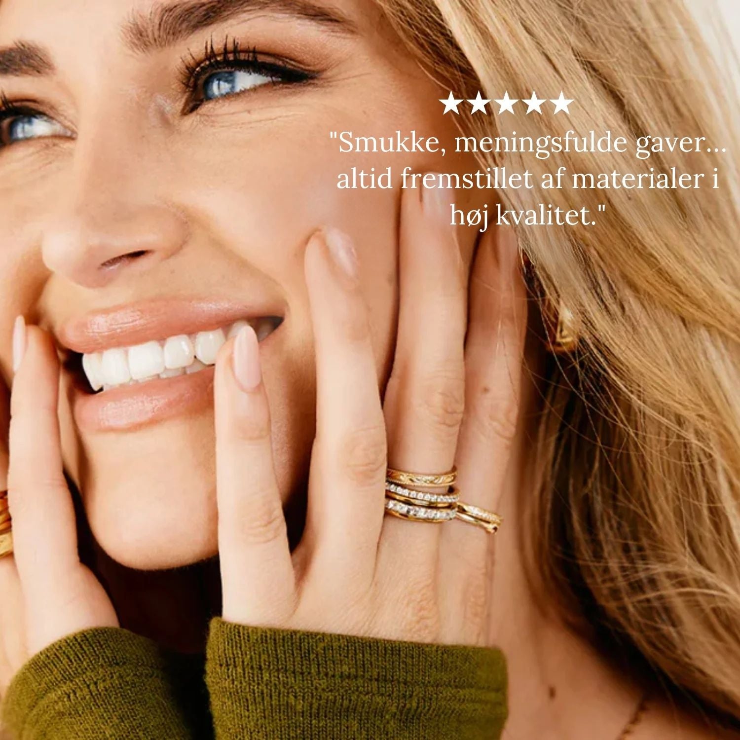 Vores smykker er skabt til at blive båret hele dagen. Hvert smykke er fremstillet til at holde, så du aldrig behøver at tage det af — uanset om du er på arbejde, ude med venner, eller endda i bad.