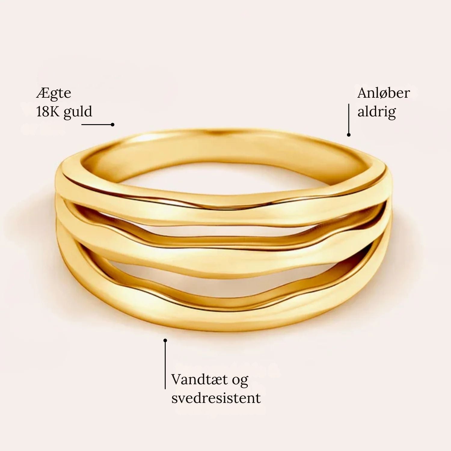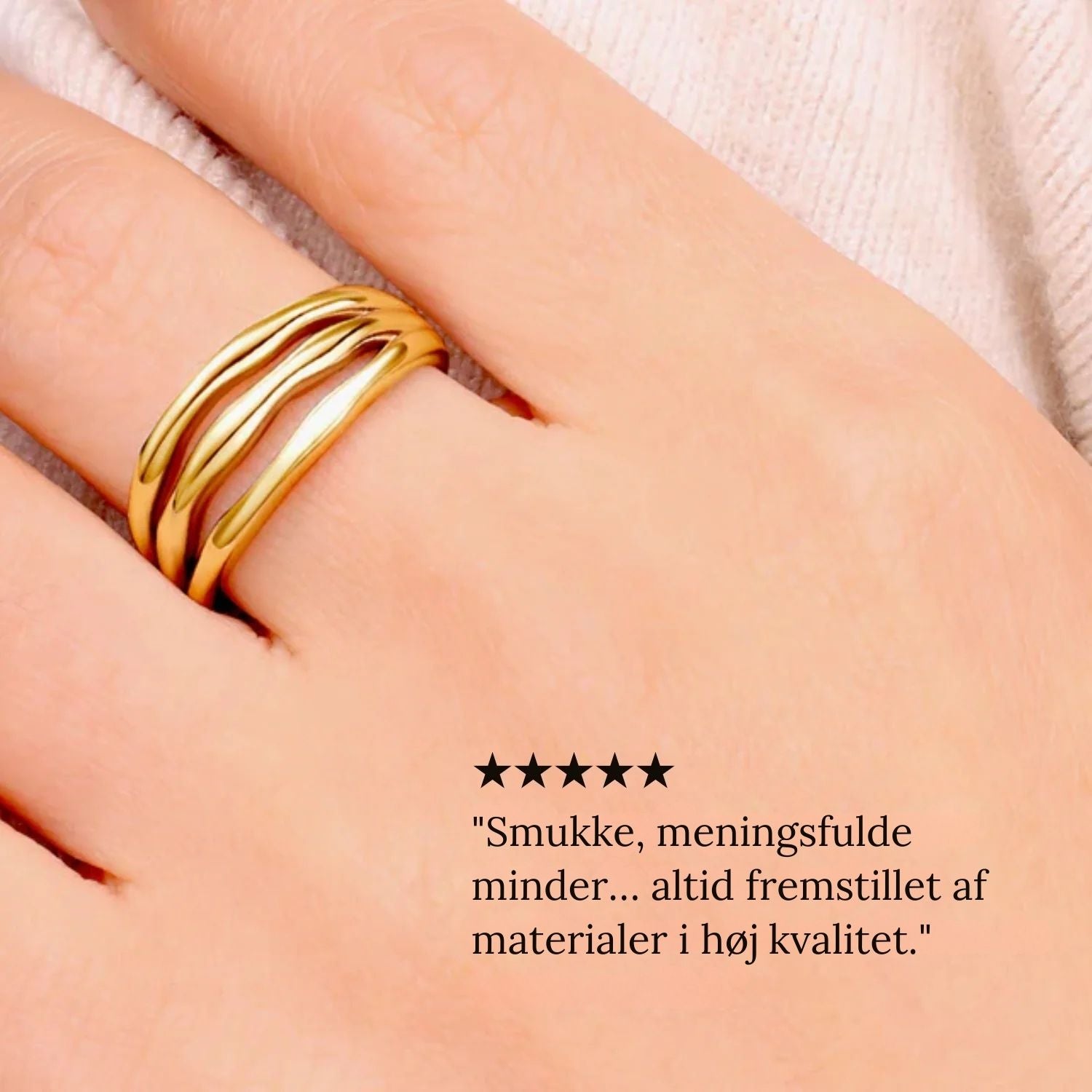 En ring med et dristigt og raffineret design – perfekt til at løfte dine hverdagslooks eller til at give et glamouriøst touch ved særlige lejligheder. De tre sammenflettede bånd forener klassisk elegance med et moderne præg og skaber et smykke, der både er alsidigt og tidløst.