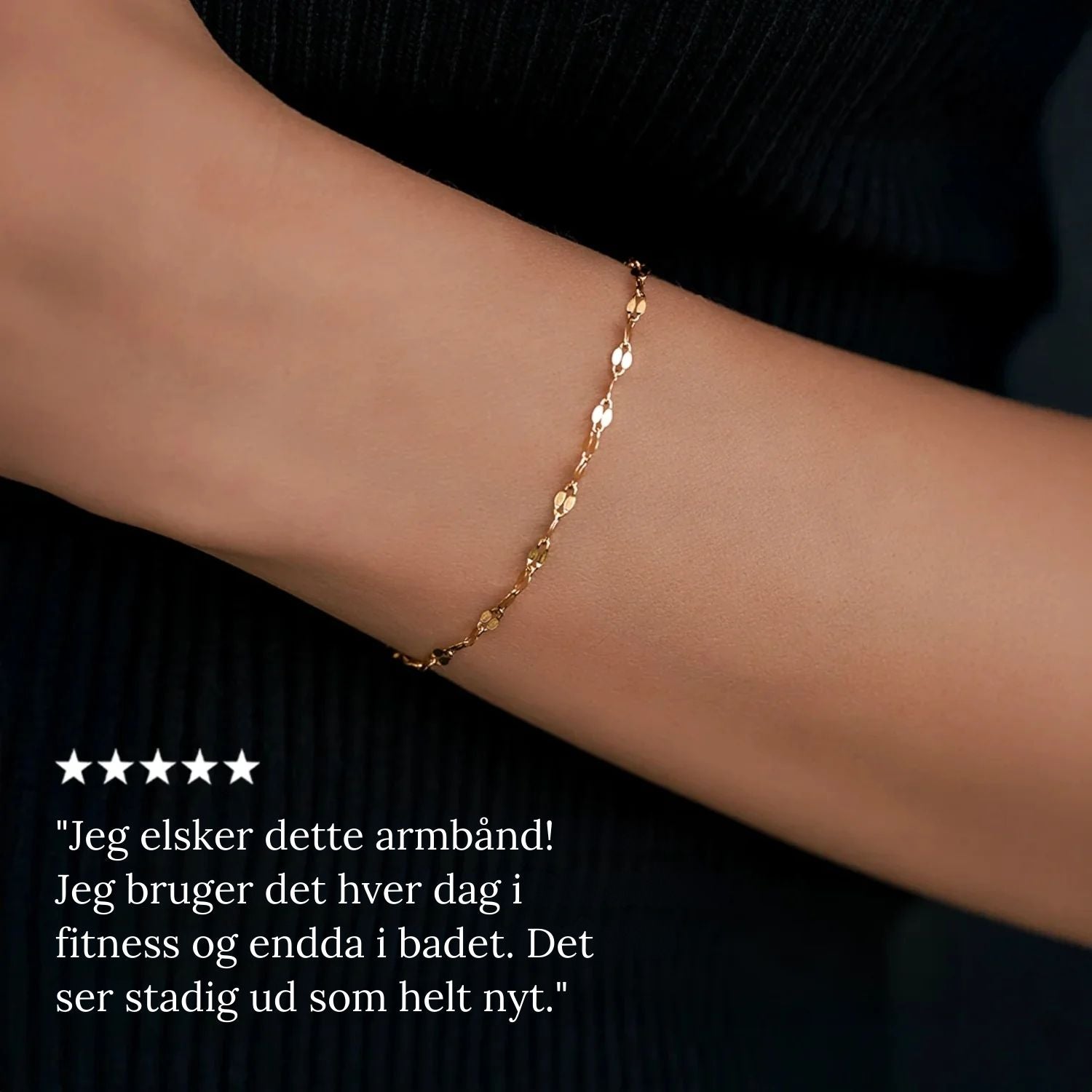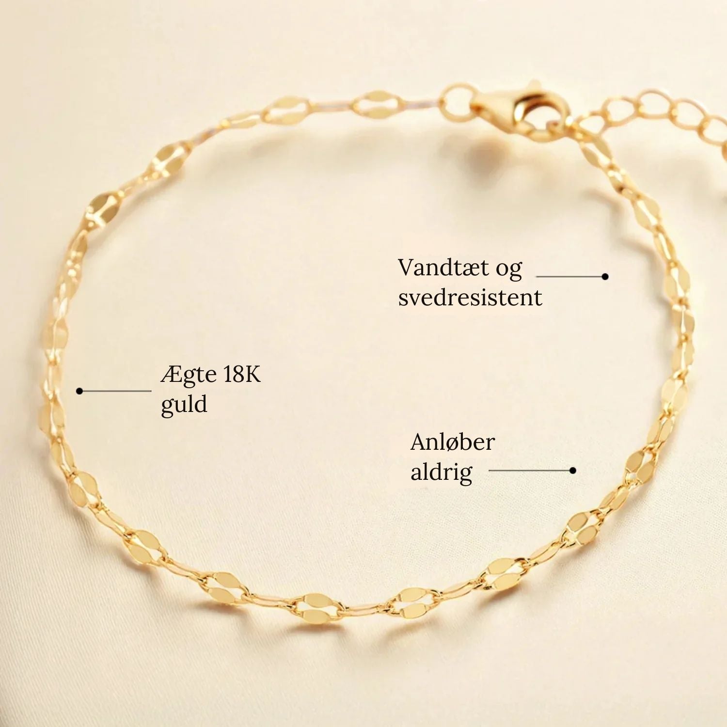 En gylden glans så let som kronblade. Dette pétale-kædearmbånd giver dit look et yndefuldt touch — smukt alene eller i lag. De elegante led fanger lyset på subtil vis og skaber et ubesværet dagligt skær.