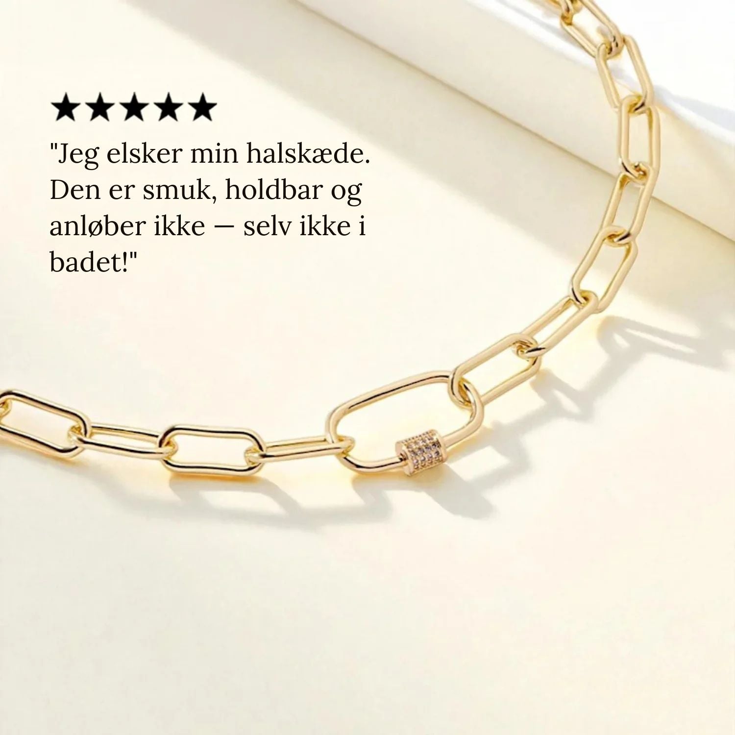 Vores smykker er skabt til at blive båret hele dagen. Hvert smykke er fremstillet til at holde, så du aldrig behøver at tage det af — uanset om du er på arbejde, ude med venner, eller endda i bad.