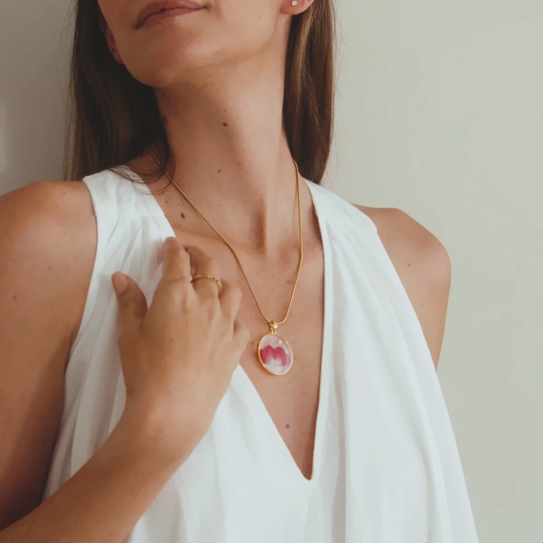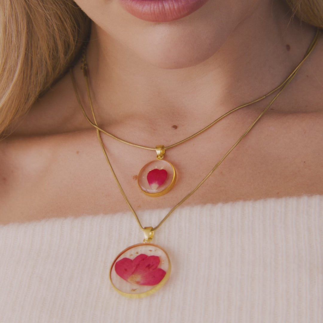 Intensiv, zart und zutiefst symbolisch fängt diese Halskette die einzigartige Energie jedes Blütenblatts ein: Sanftheit, Kraft, Neubeginn oder Leidenschaft. Ein floraler Talisman, der den Alltag erhellt.