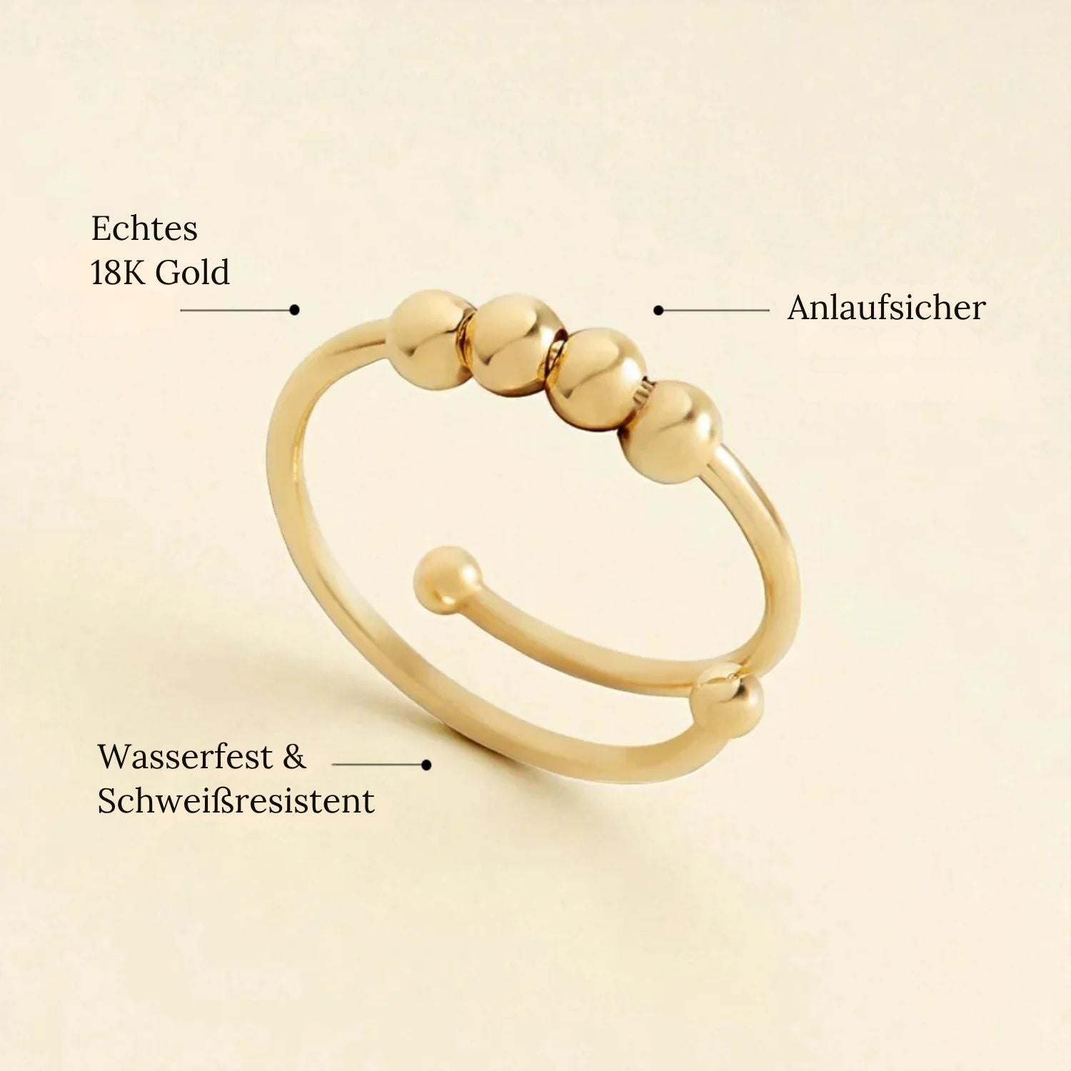 Ein eleganter, verstellbarer Ring, der entwickelt wurde, um zu beruhigen und zu zentrieren. Sein Design mit beweglichen Perlen bietet eine sanfte sensorische Stimulation, die hilft, Energie zu kanalisieren, die Konzentration zu fördern und Stress im Alltag zu reduzieren. Ein dezentes und raffiniertes Accessoire, das zu jeder Situation passt.
