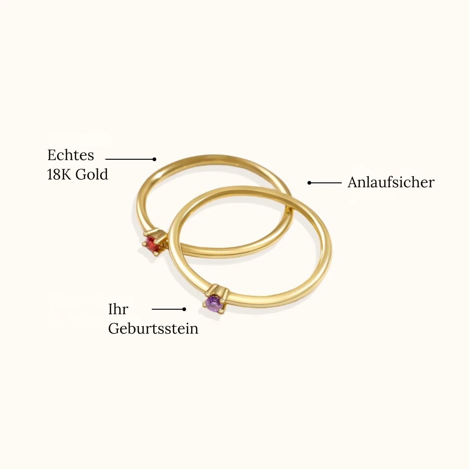 Ein zarter, eleganter Ring mit einem dezent gefärbten Geburtsstein. Dezent und bedeutungsvoll zugleich – solo getragen für einen subtilen Akzent oder kombiniert mit anderen Ringen für einen persönlichen Stil. Perfekt, um Ihren Geburtsmonat zu feiern oder einem geliebten Menschen ein symbolisches Geschenk zu machen.