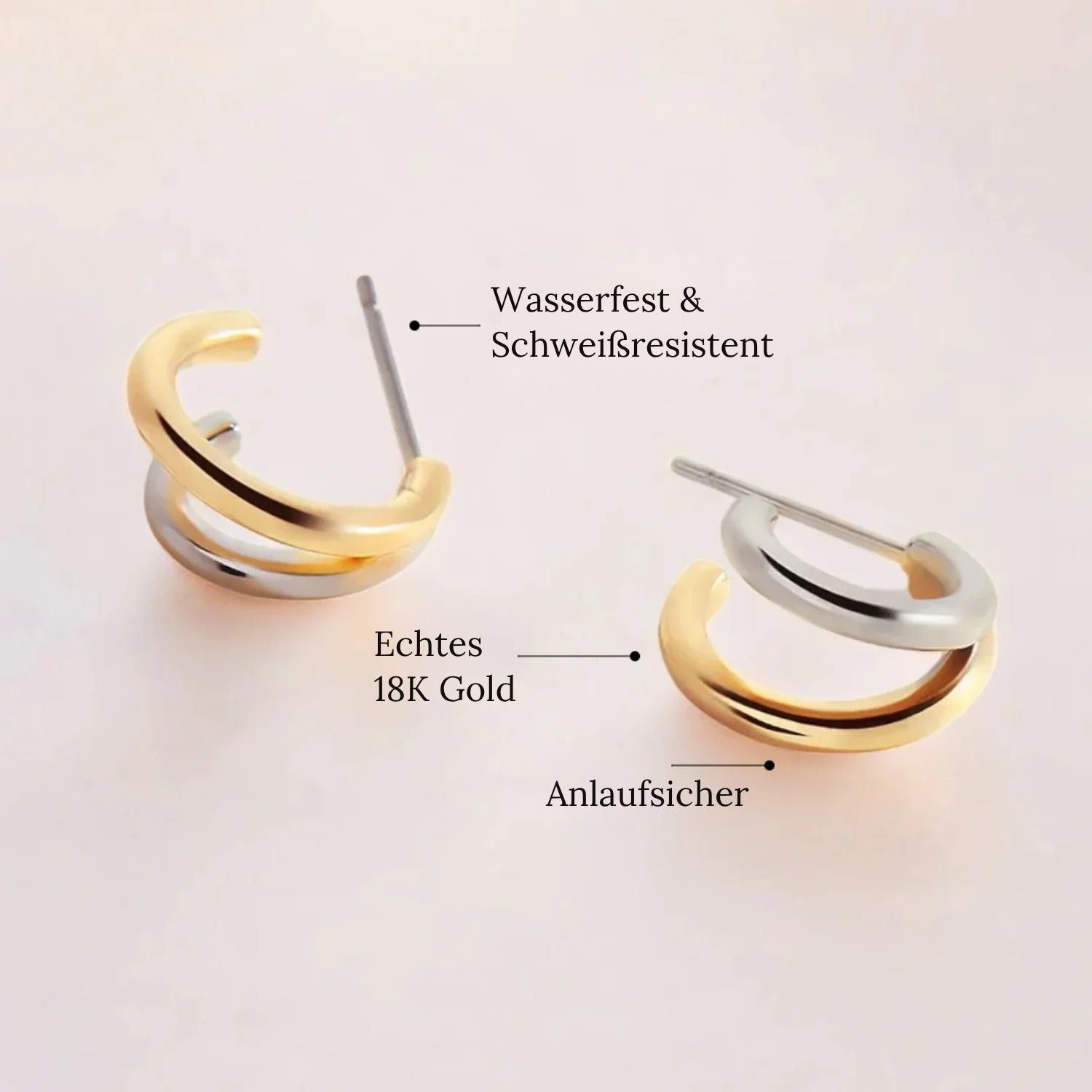 Erzielen Sie den angesagten Doppel-Piercing-Look mühelos mit diesen doppelten Bimetall-Creolen, die Silber und Gold subtil vereinen – für einen modernen und anspruchsvollen Stil. Sorgfältig gefertigt, verbinden sie Komfort und Eleganz und verleihen jedem Outfit einen Hauch von Chic.