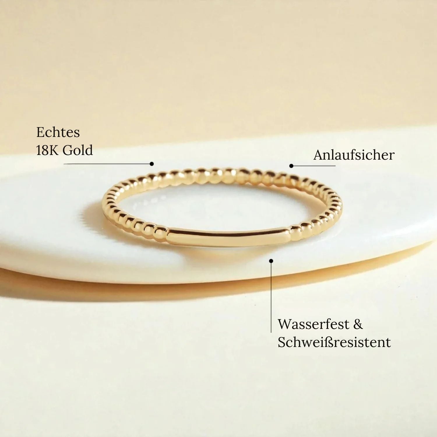 Ein zarter, zeitloser Ring, der Ihren Stil im Alltag dezent veredelt. Seine feine, perlierte Struktur verleiht ihm eine diskrete Eleganz – solo getragen für einen subtilen Akzent oder kombiniert mit anderen Ringen für einen modernen, eleganten Look.