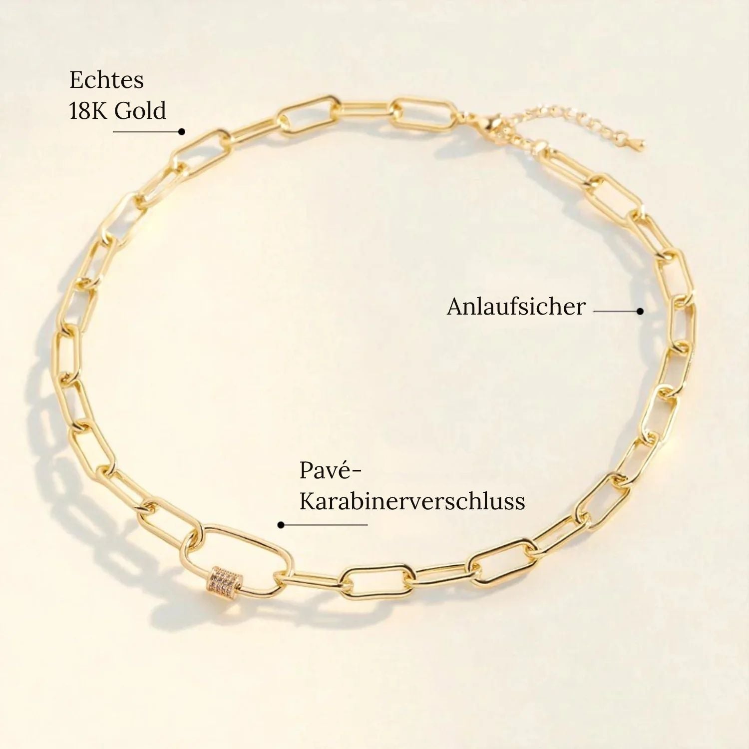 Kettenglieder-Halskette mit Pavé-Karabiner