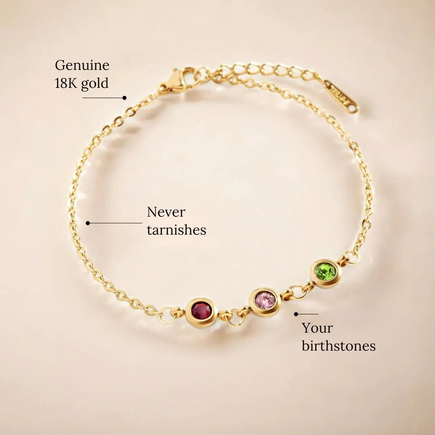 An elegant and meaningful piece. The Harmony Birthstone Bracelet can be personalized with your favorite stones to represent your loved ones or your own story. A refined design to wear every day or on special occasions — a perfect gift for a birthday, anniversary, or simply to treat yourself.