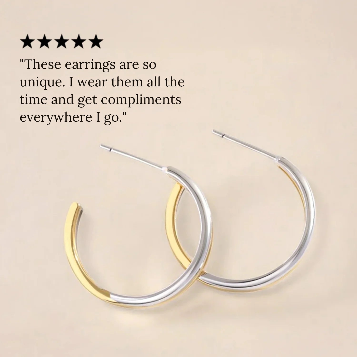 A perfect harmony of elegance and modern style. These bimetal crossover earrings blend gold and silver with subtle sophistication. Ideal for those who enjoy mixing metals, they pair effortlessly with any outfit and complement every jewelry collection.