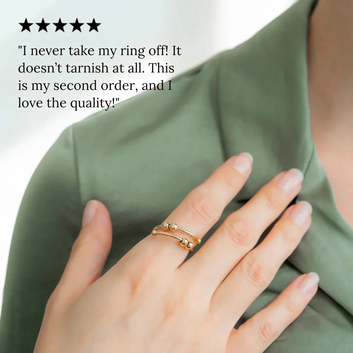 An elegant, adjustable ring designed to soothe and refocus. Its movable bead design provides gentle sensory stimulation that helps channel energy, enhance focus, and reduce everyday stress. A discreet and refined accessory, perfect for any situation.