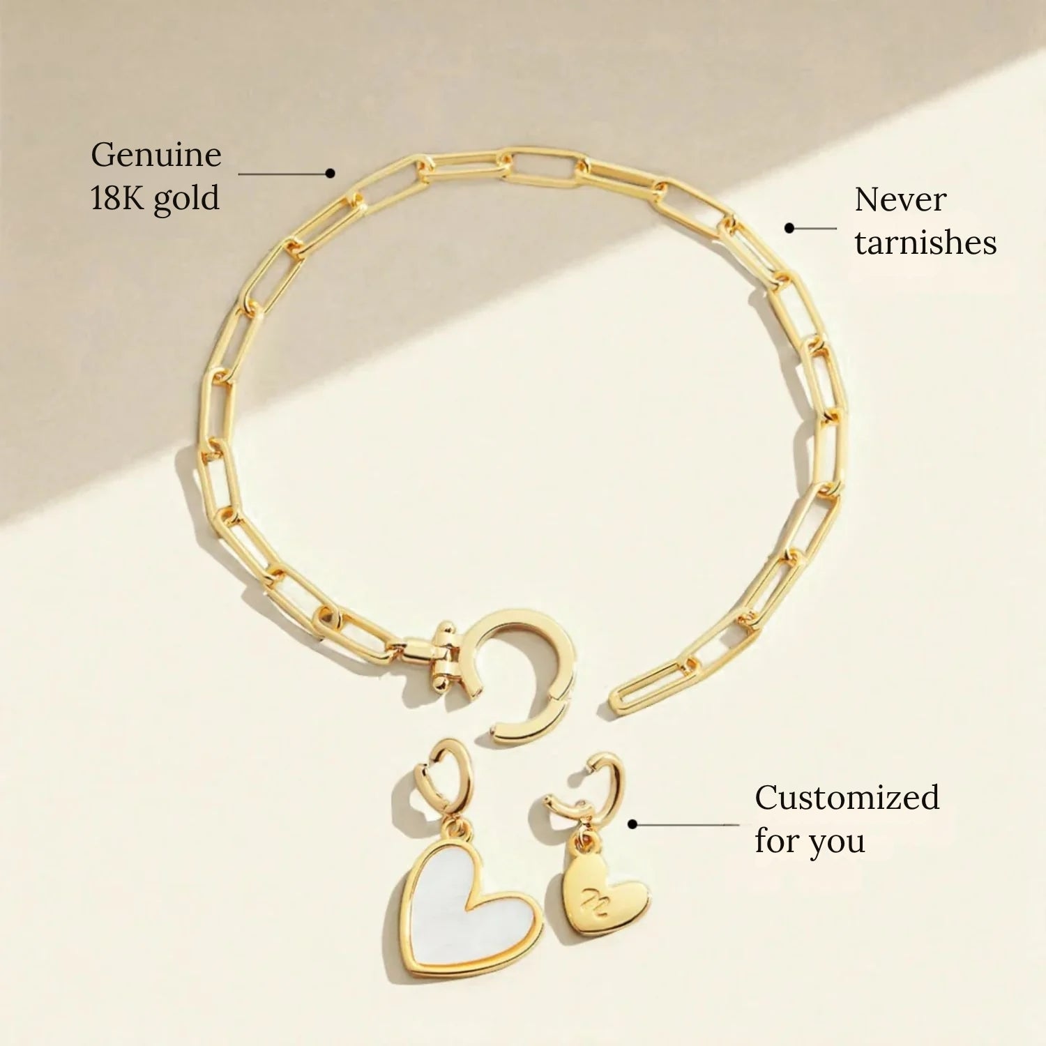 Mother-of-Pearl Heart Initial Pendant Bracelet