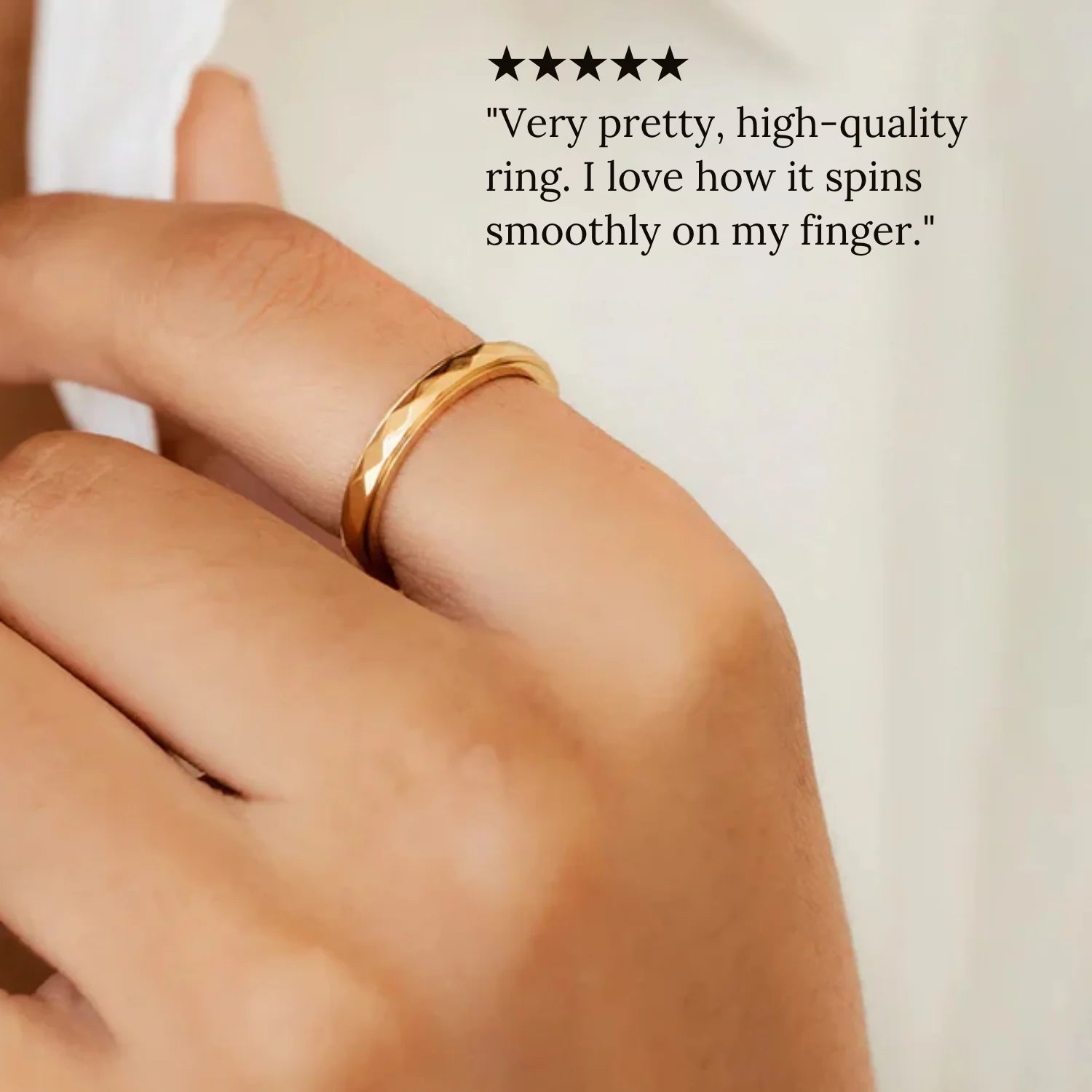 A fine and elegant ring designed to calm the mind and enhance focus. Its hammered design features a movable band that provides gentle sensory stimulation, helping to channel energy and relieve stress. Studies show that this type of repetitive motion can naturally promote relaxation and improve concentration, especially for those prone to anxiety or attention disorders (ADHD).