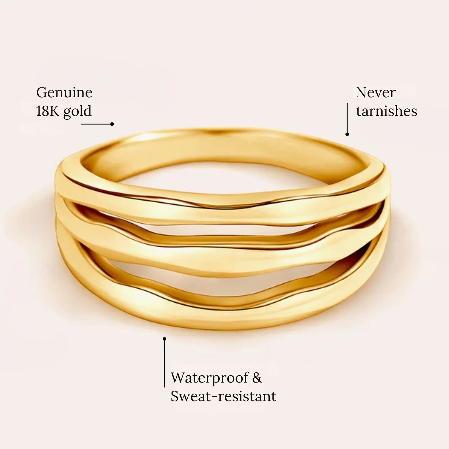 A bold yet refined ring, perfect to elevate your everyday looks or shine on special occasions. Its triple-band design blends classic elegance with a modern touch, making it a versatile and timeless piece of jewelry.