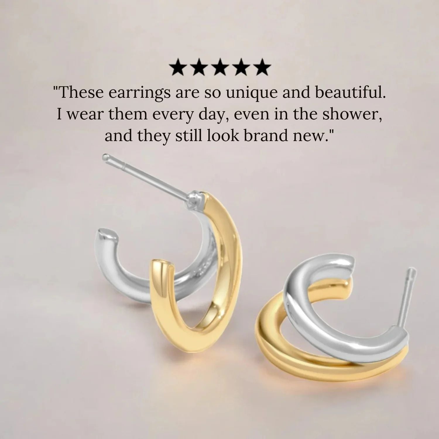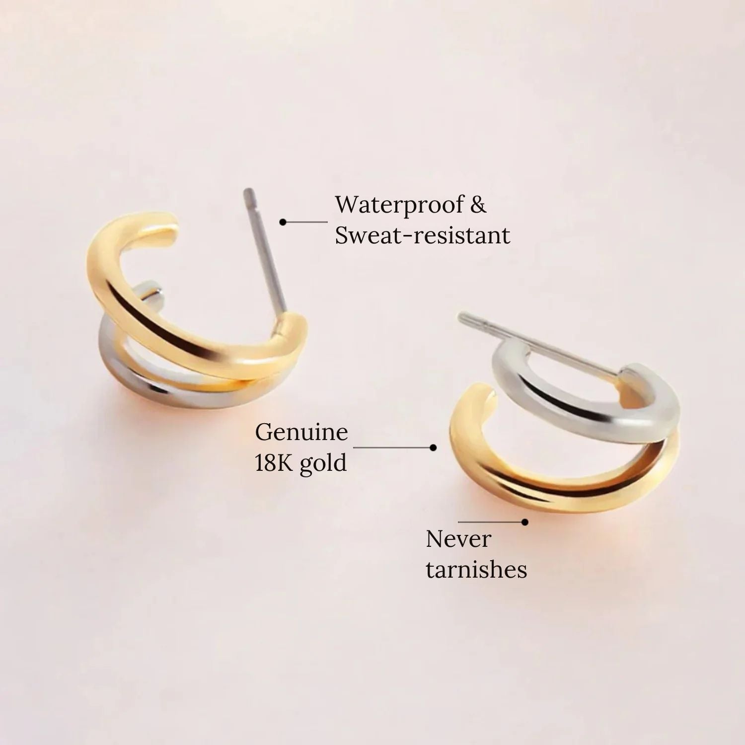 Effortlessly achieve the double-pierced look with these bimetal double hoops, subtly blending silver and gold for a modern, sophisticated style. Carefully crafted for comfort and elegance, they add a chic touch to any outfit.