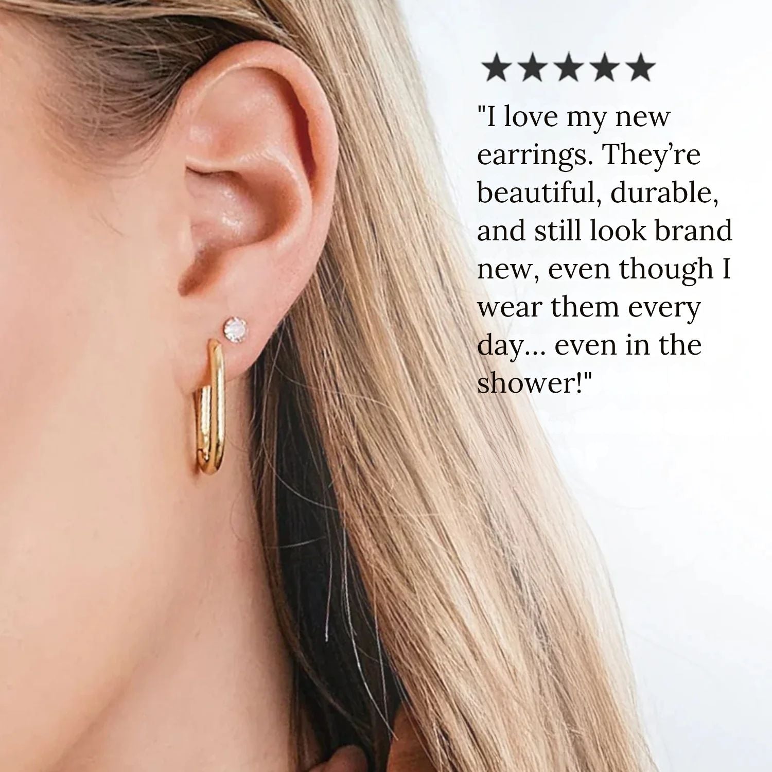 A modern reinterpretation of vintage elegance. These thick rectangular hoops exude a refined and contemporary charm — perfect for elevating everyday outfits or adding sophistication to special occasions. Wear them solo for a bold statement or stacked for an edgy, layered look.