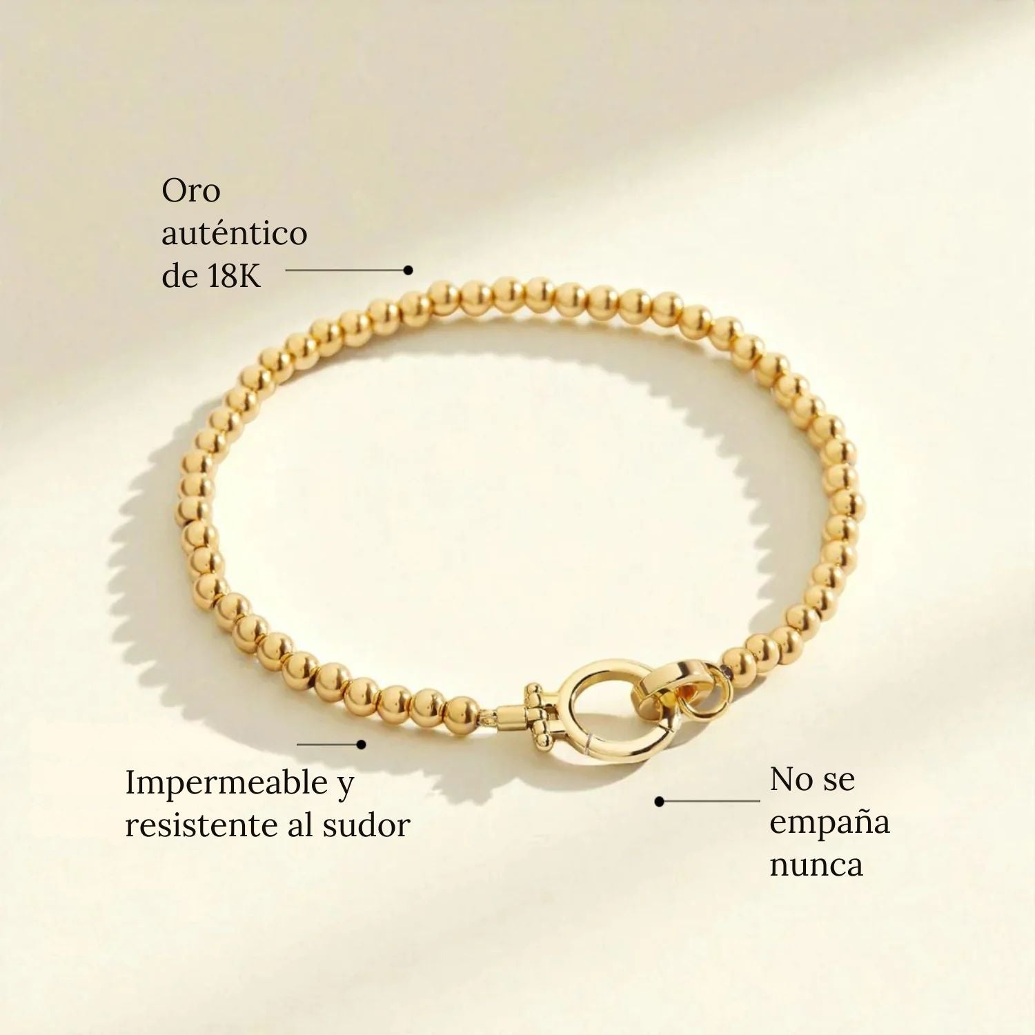 • Perlas: acero inoxidable hipoalergénico chapado en oro de 18K, duradero y sin níquel