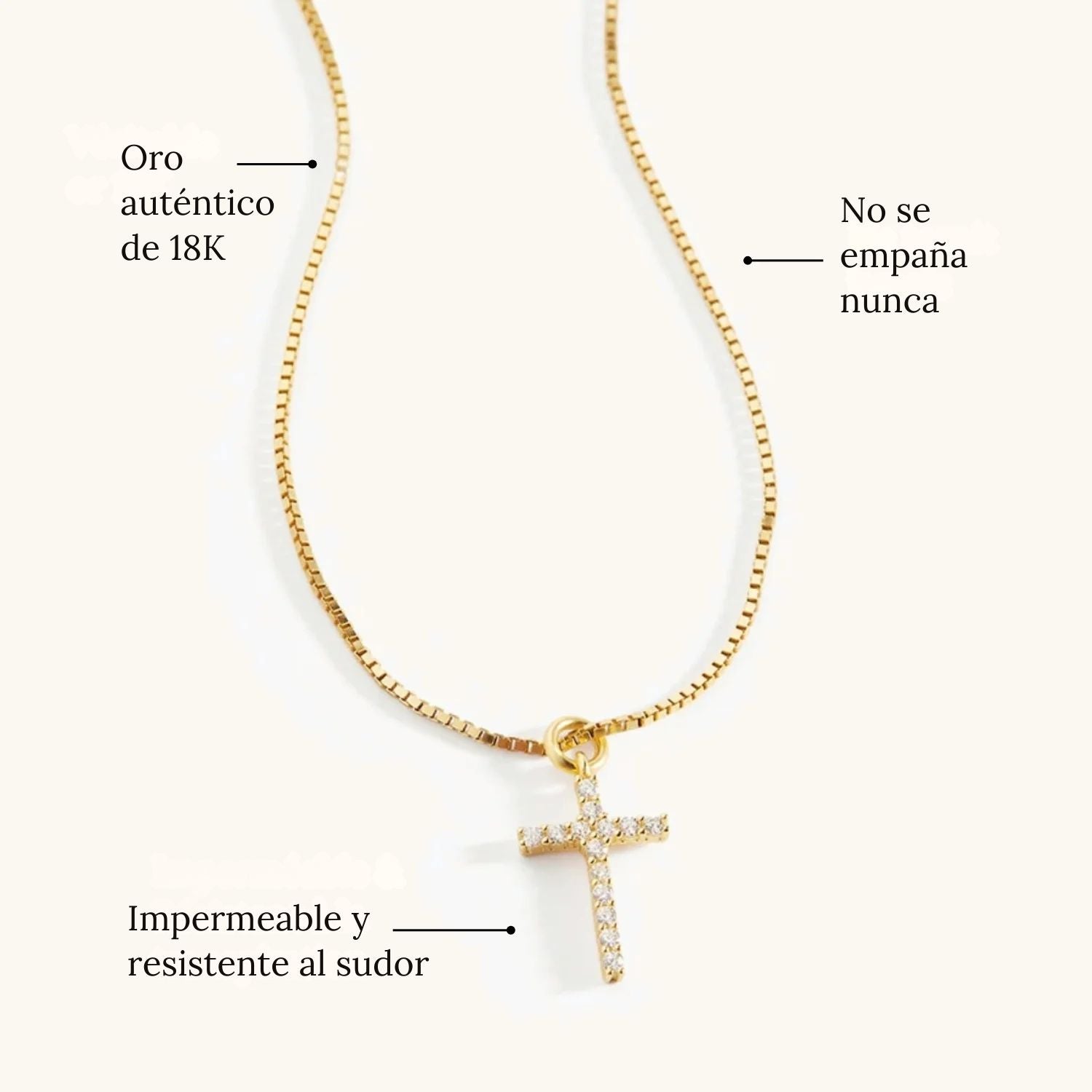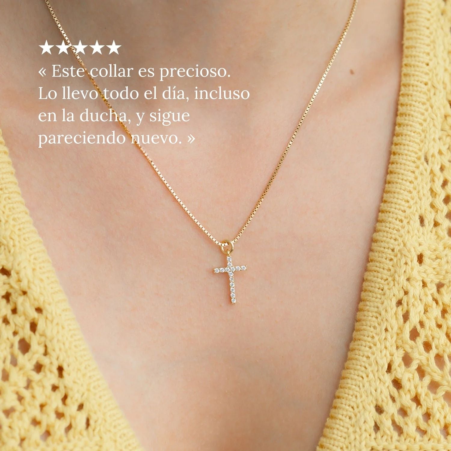 Un collar que combina elegancia y espiritualidad. Su colgante de cruz, adornado con piedras pavé centelleantes, capta magníficamente la luz y aporta un toque de glamour a este símbolo atemporal de fe y protección.