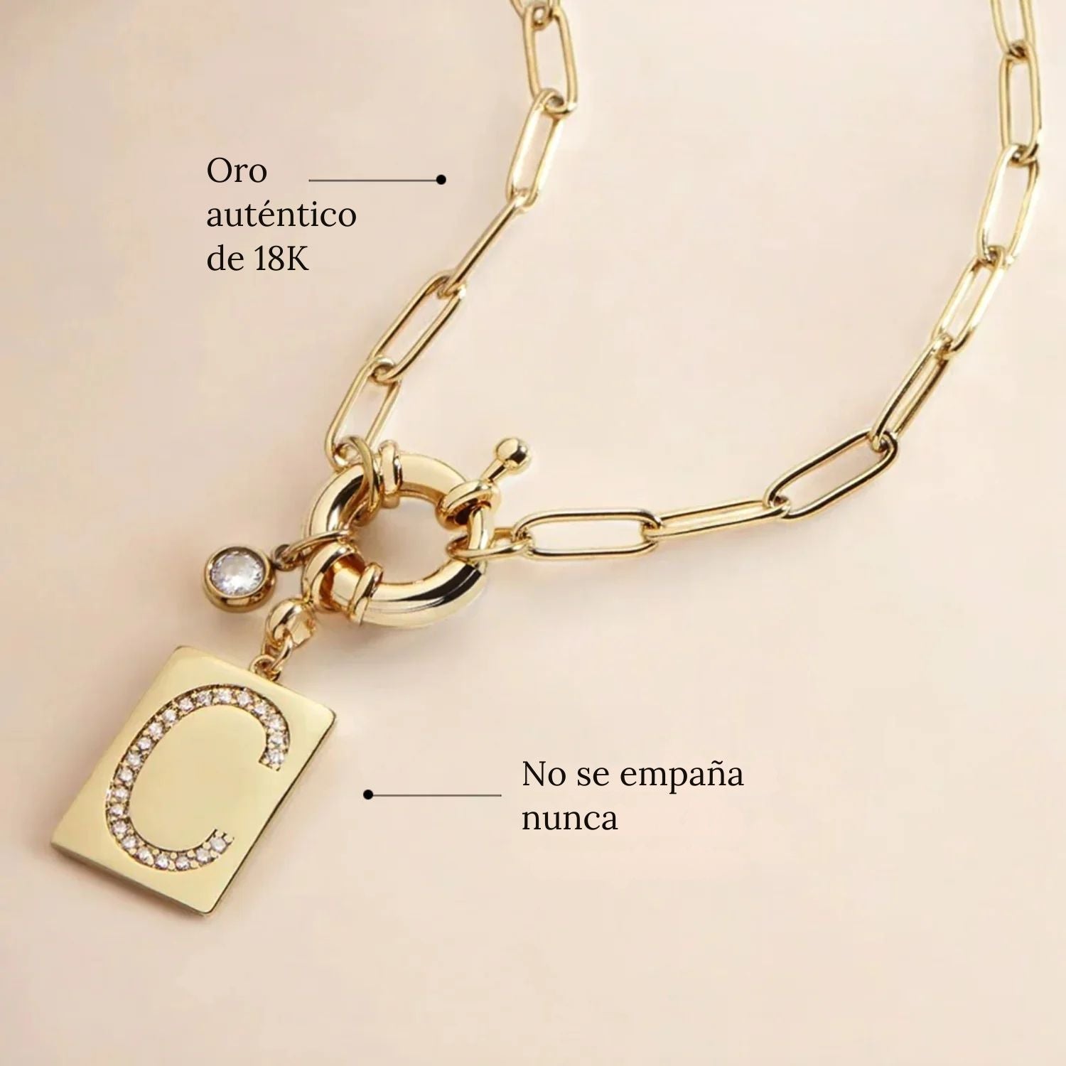 Collar con Colgante de Inicial Pavé y Cadena de Eslabones