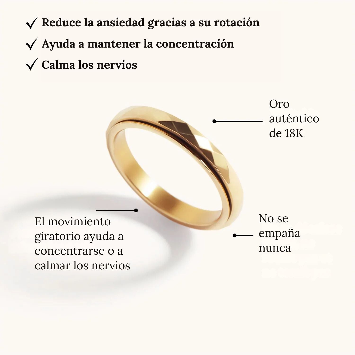 Un anillo fino y elegante, diseñado para calmar la mente y favorecer la concentración. Su diseño martillado incorpora un aro móvil que ofrece una suave estimulación sensorial, ayudando a canalizar la energía y a reducir el estrés. Estudios indican que este tipo de movimiento repetitivo puede contribuir a mejorar la concentración y aportar una sensación de calma natural, especialmente en personas propensas a la ansiedad o con trastorno por déficit de atención (TDAH).