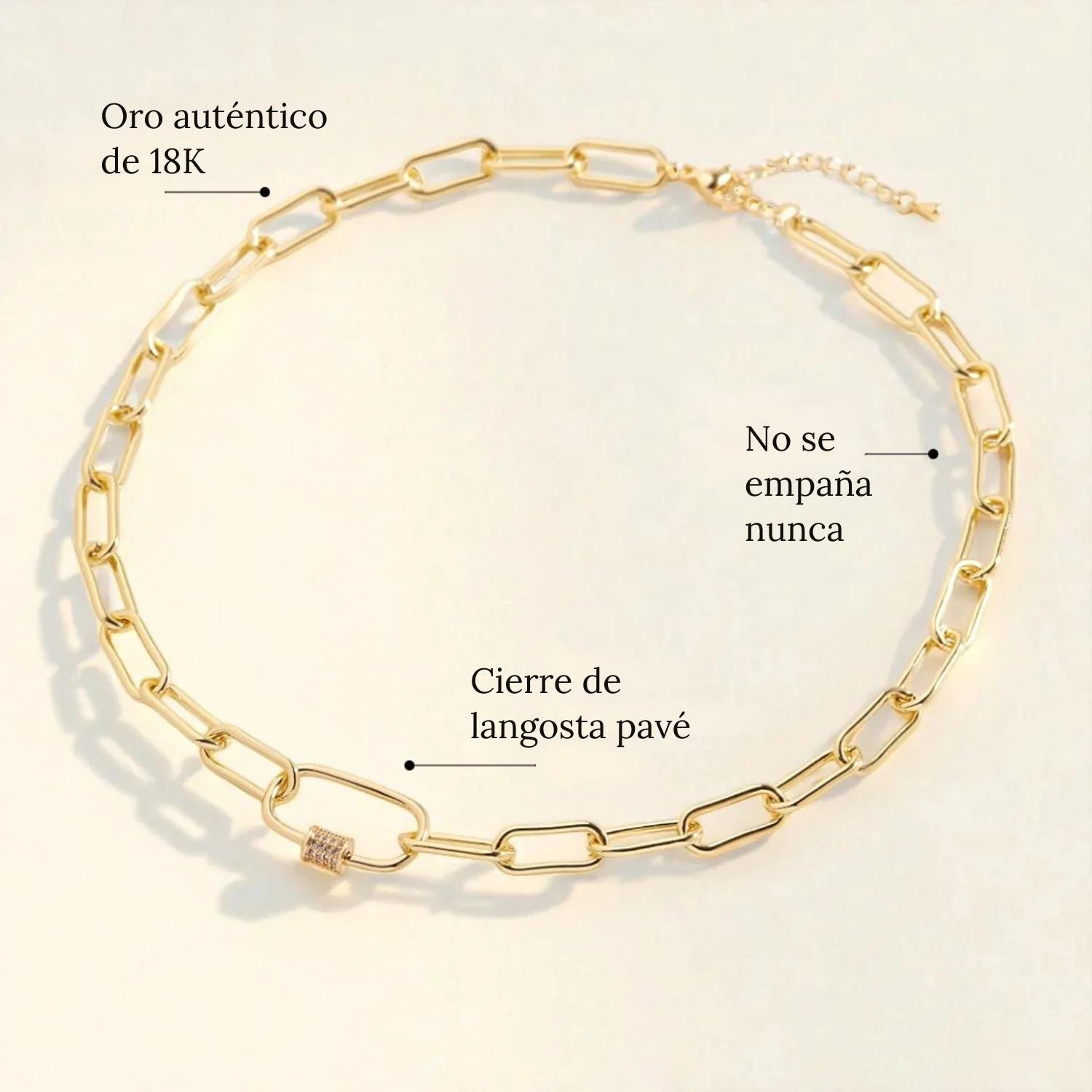 Collar de Cadena con Eslabones y Mosquetón Pavé