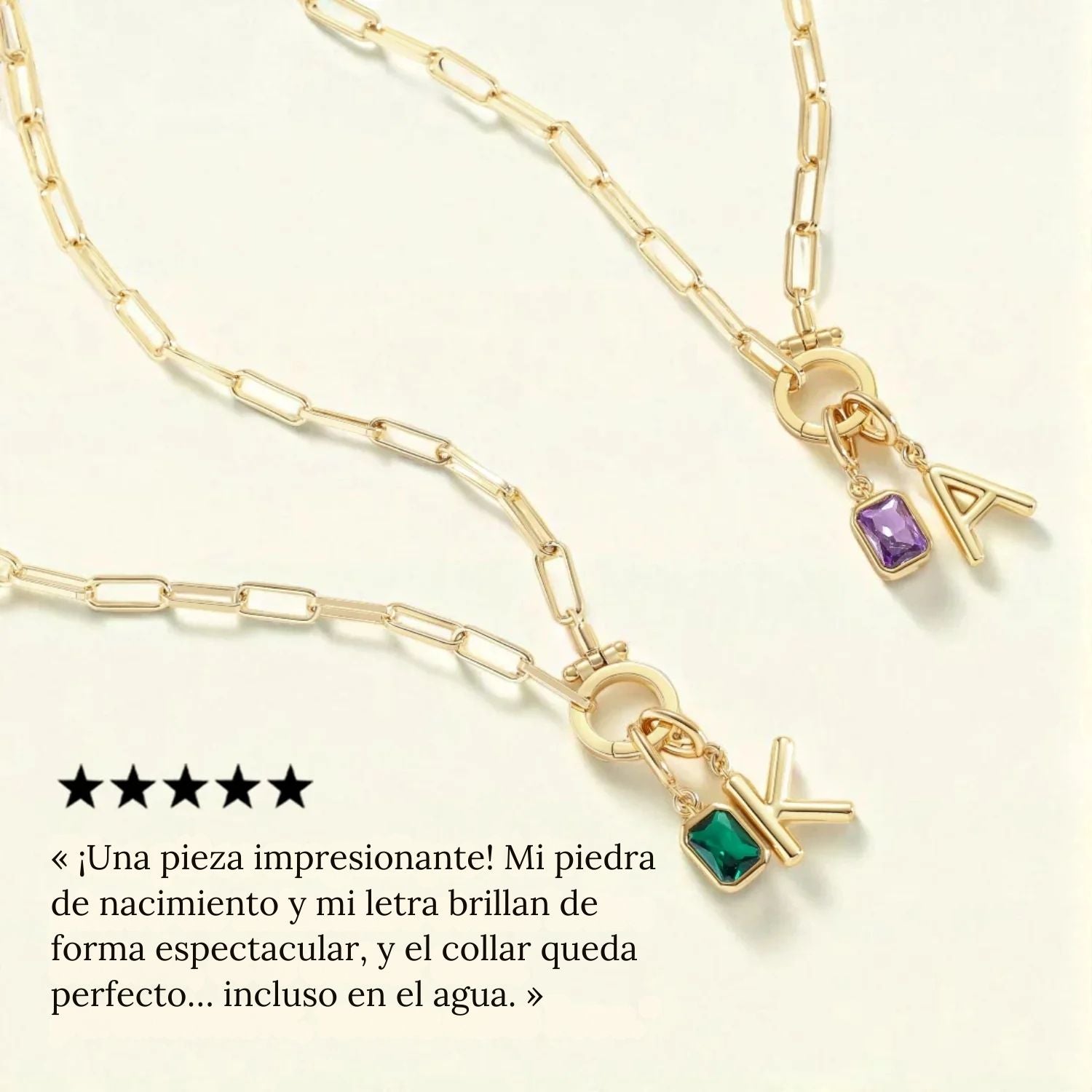 Collar de Eslabones con Inicial y Piedra de Nacimiento