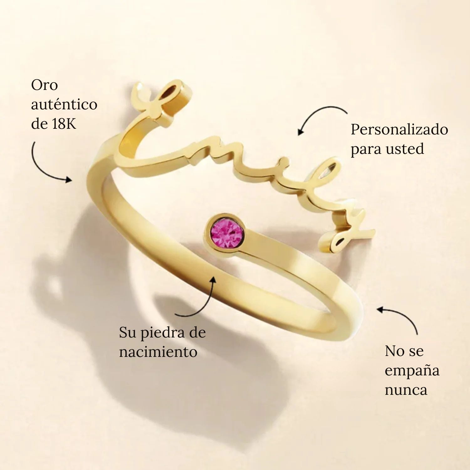 Anillo con Nombre y Piedra de Nacimiento