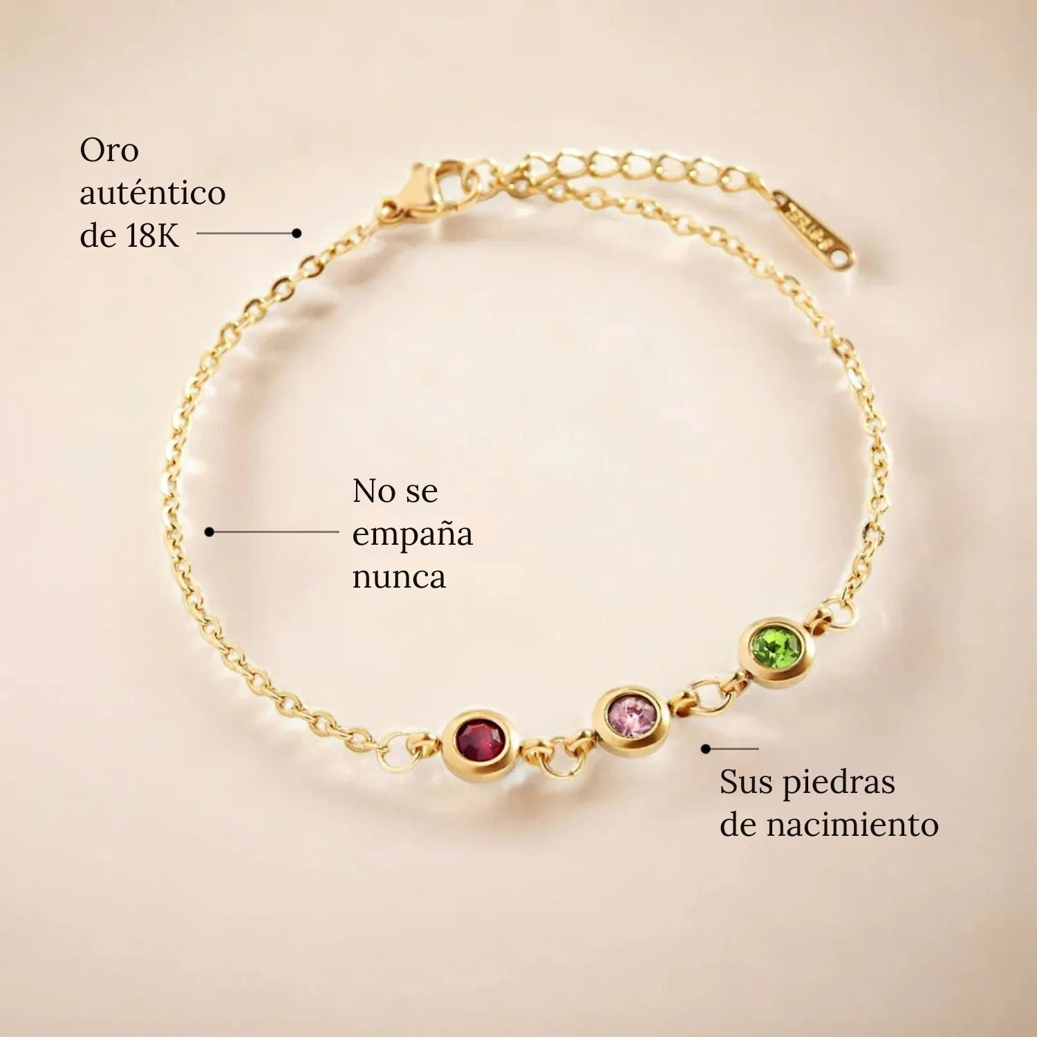 Una joya elegante y llena de significado. La pulsera Armonía con Piedra de Nacimiento se personaliza con sus piedras favoritas para simbolizar a sus seres queridos o su propia historia. Un diseño refinado para llevar a diario o en ocasiones especiales, perfecto como regalo de cumpleaños, aniversario de boda o simplemente para darse un gusto.