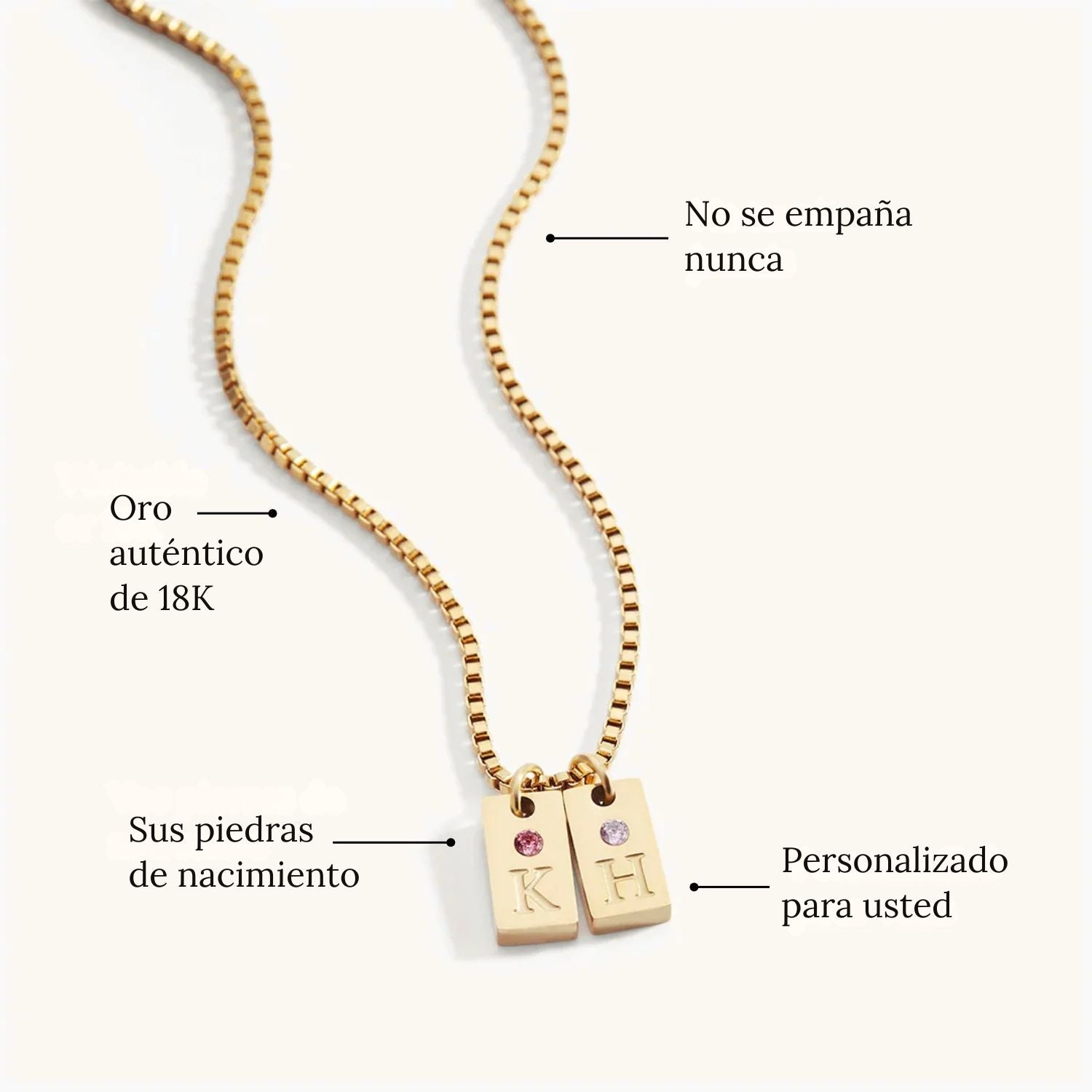 • Personalización: hasta 4 colgantes con iniciales y piedras de nacimiento