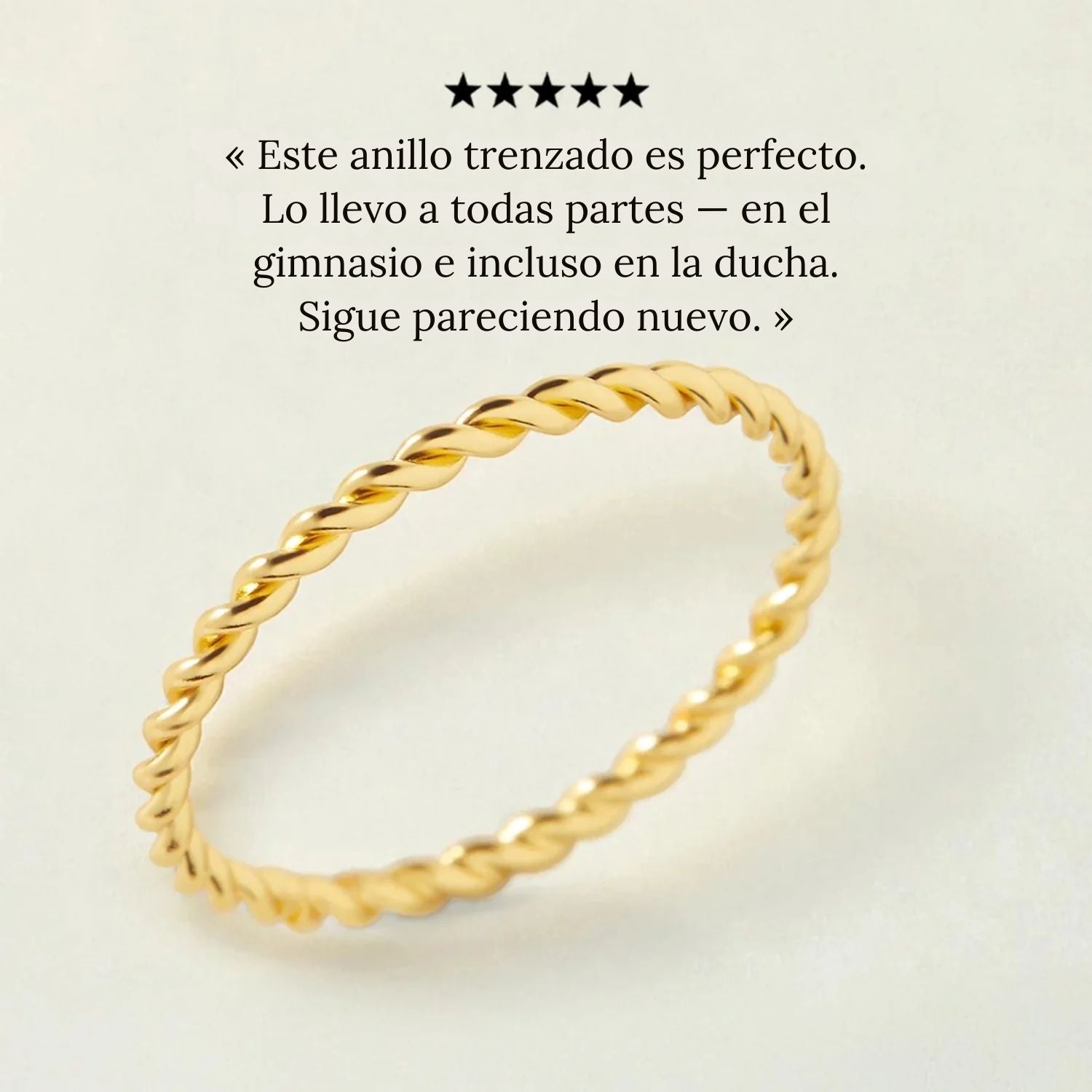 Un clásico reinventado con elegancia. El anillo fino trenzado seduce por su diseño delicadamente entrelazado, símbolo de refinamiento y atemporalidad. Perfecto para llevarlo solo o combinado, aporta un toque de elegancia natural a todos sus conjuntos.
