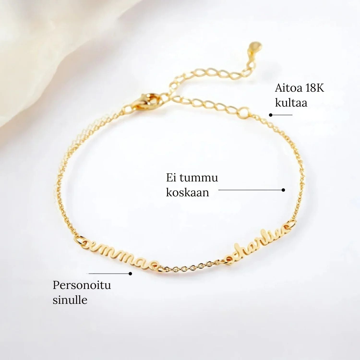 Henkilökohtainen eleganssin kosketus. Tämä hieno rannekoru useilla nimillä antaa sinun pitää läheisesi aina mukanasi — tyylikkäästi ja hillitysti. Käytettäväksi yksinään tai kerrostettuna luomaan hienostunut ja merkityksellinen ilme.
