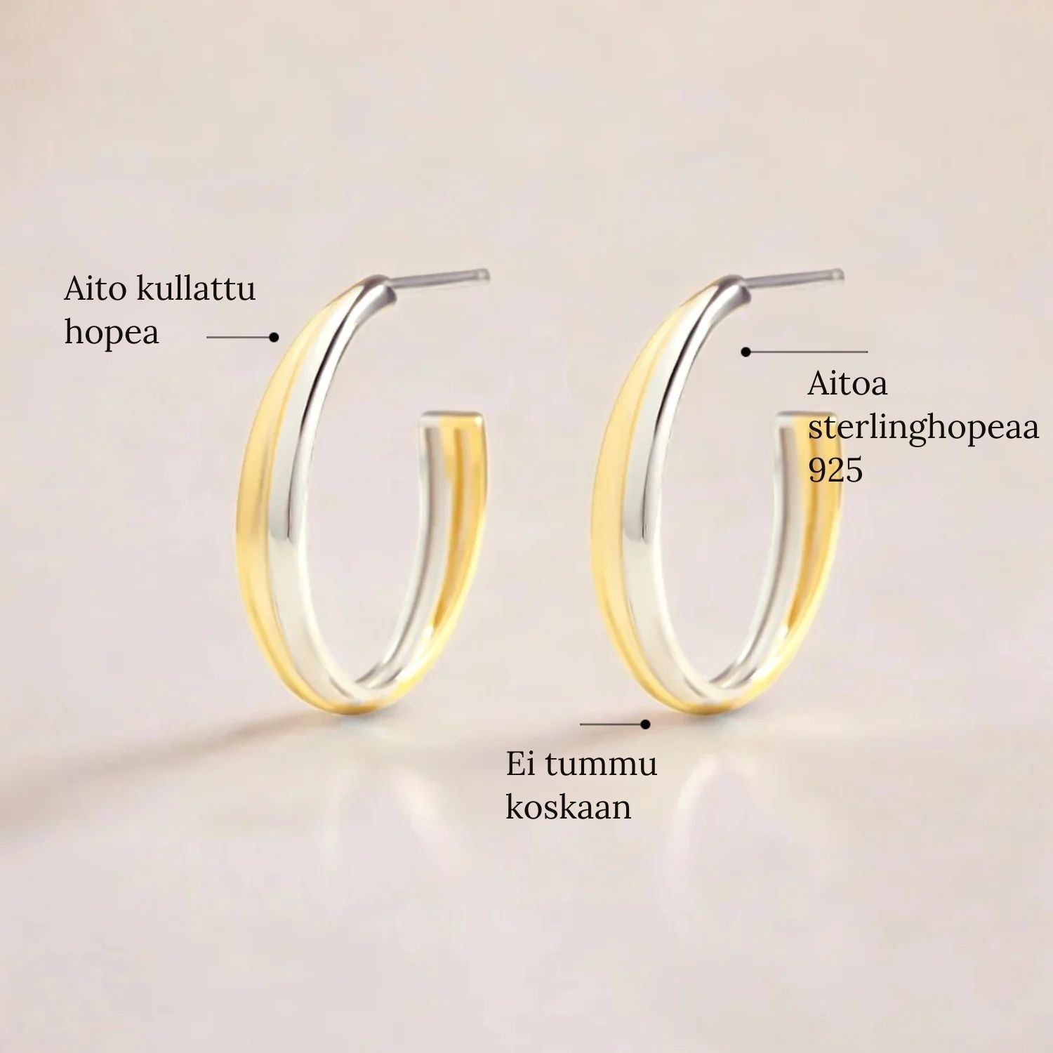 Täydellinen tasapaino eleganssin ja modernin muotoilun välillä. Nämä risteävät kaksimetalliset korvakorut yhdistävät hienovaraisesti kullan ja hopean luoden monipuolisen ja hienostuneen tyylin. Ihanteelliset niille, jotka rakastavat metallien yhdistelyä — ne täydentävät vaivattomasti kaikkia asujasi ja muita korujasi.