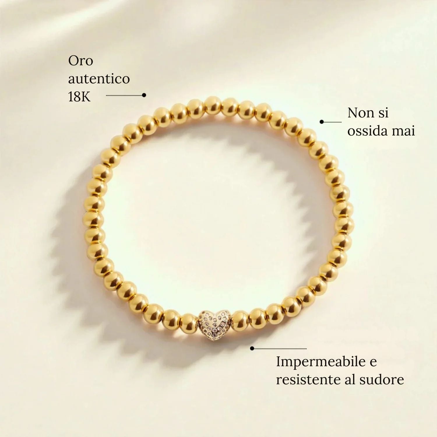 • Materiali: perle placcate oro 18K montate su un elastico di qualità gioielleria