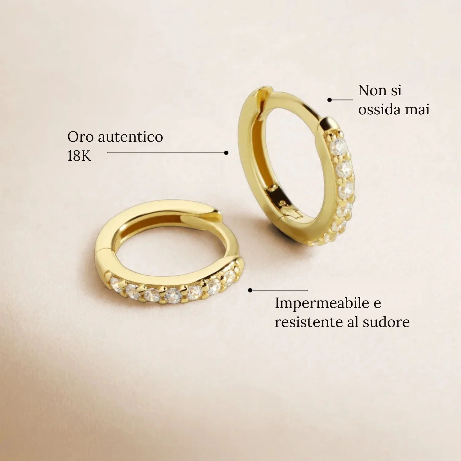 Esalta la tua eleganza quotidiana con queste créole pavé scintillanti. Impreziosite da pietre AAA in ossido di zirconio, offrono una luminosità sottile che illumina ogni outfit. Realizzate in argento sterling placcato oro 18K, uniscono durata e finitura lussuosa.