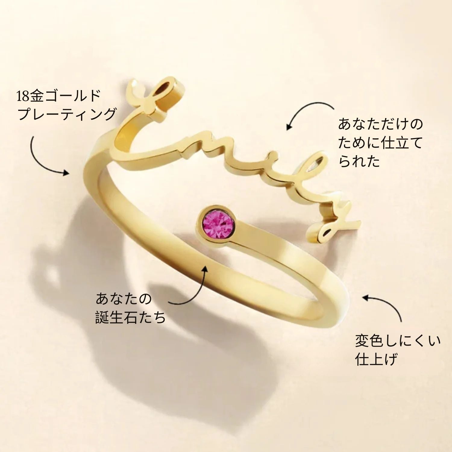 名前と誕生石をひとつにした、世界にひとつだけのリング。