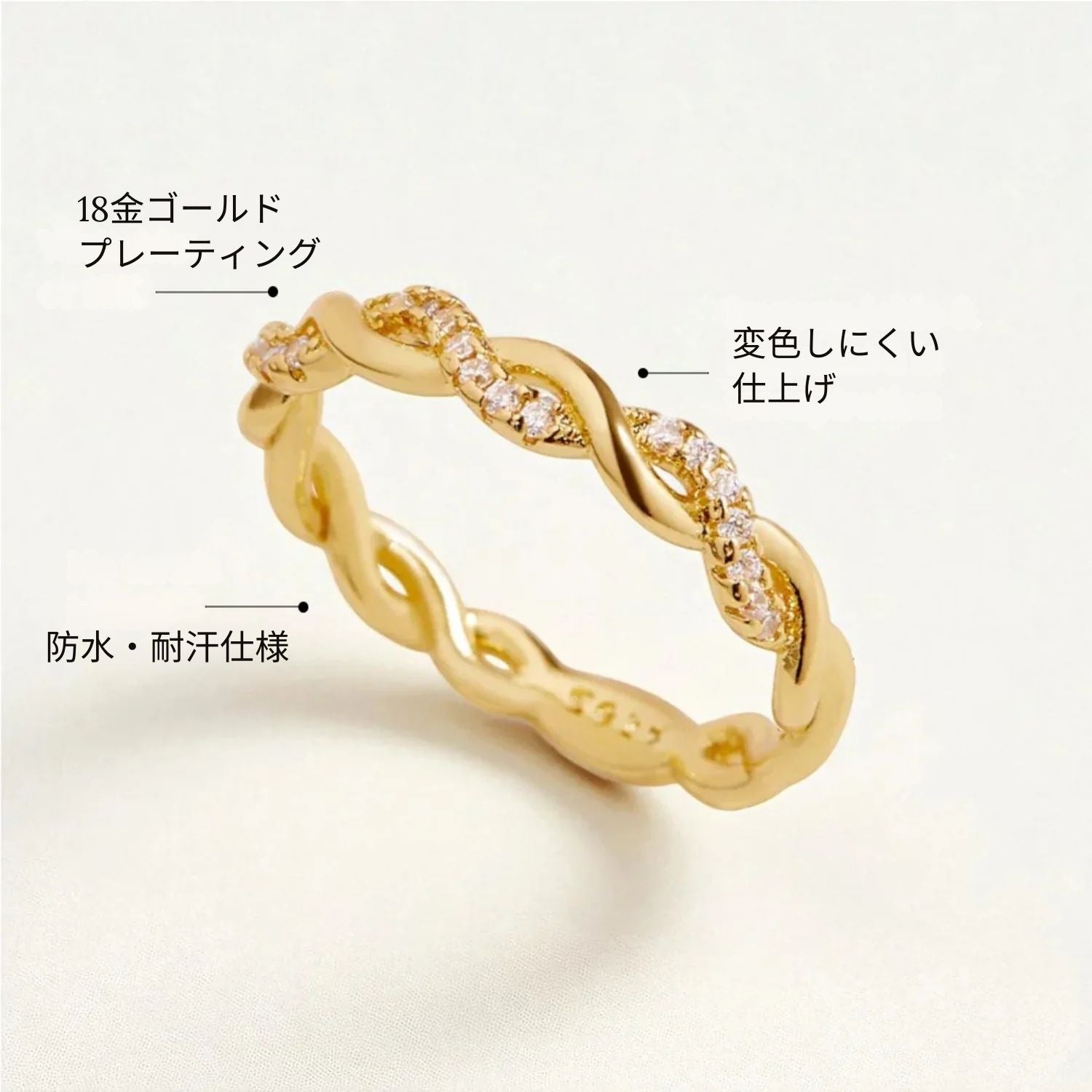 ・素材:18Kゴールドプレーティングを施したスターリングシルバー925、ジルコニア
