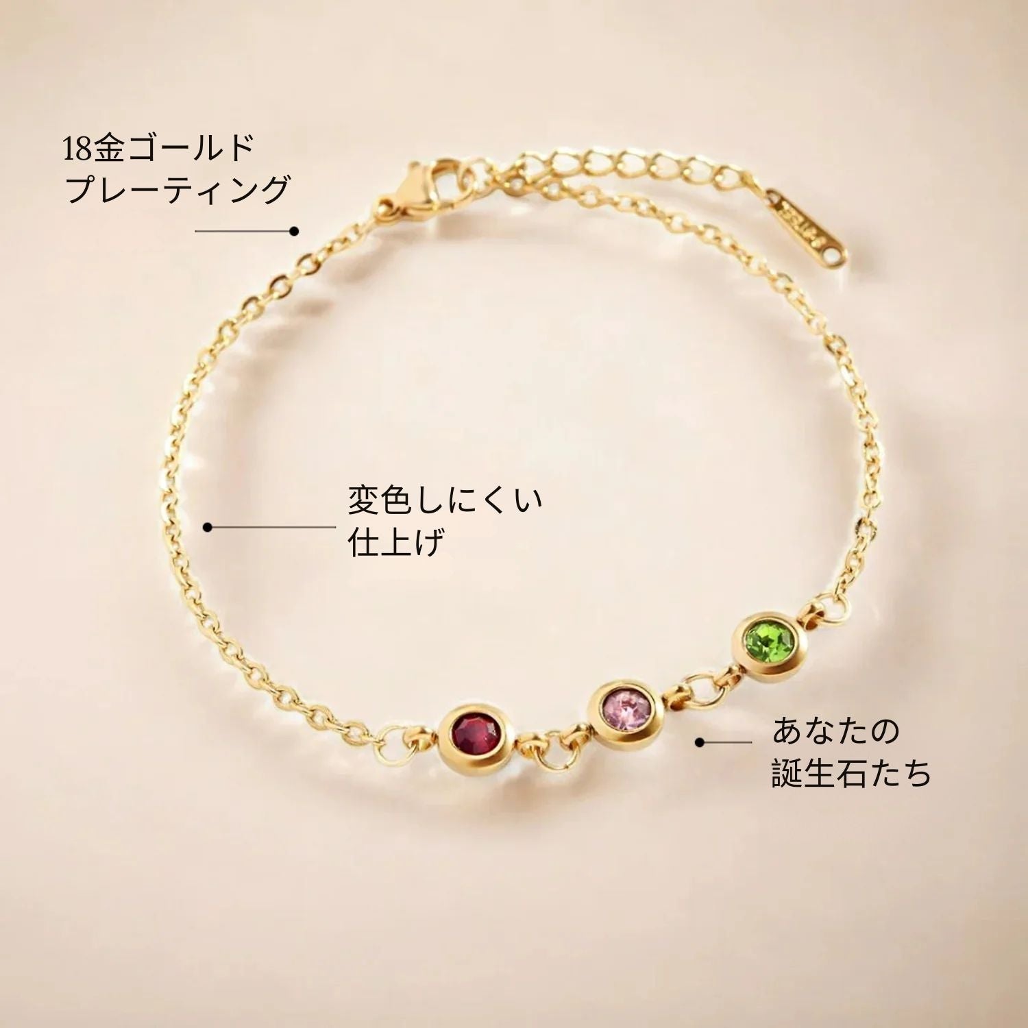 ・ブレスレットの長さ:15 / 18 / 20cm+アジャスター2.5cm