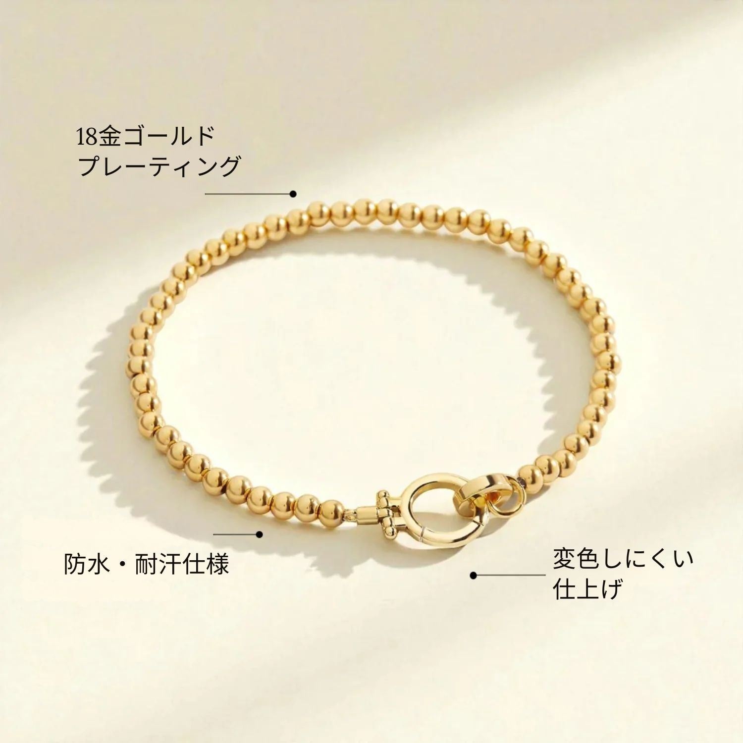 ・パール:18Kゴールドプレーティングを施した低アレルギー性ステンレススチール(ニッケルフリー・高耐久)