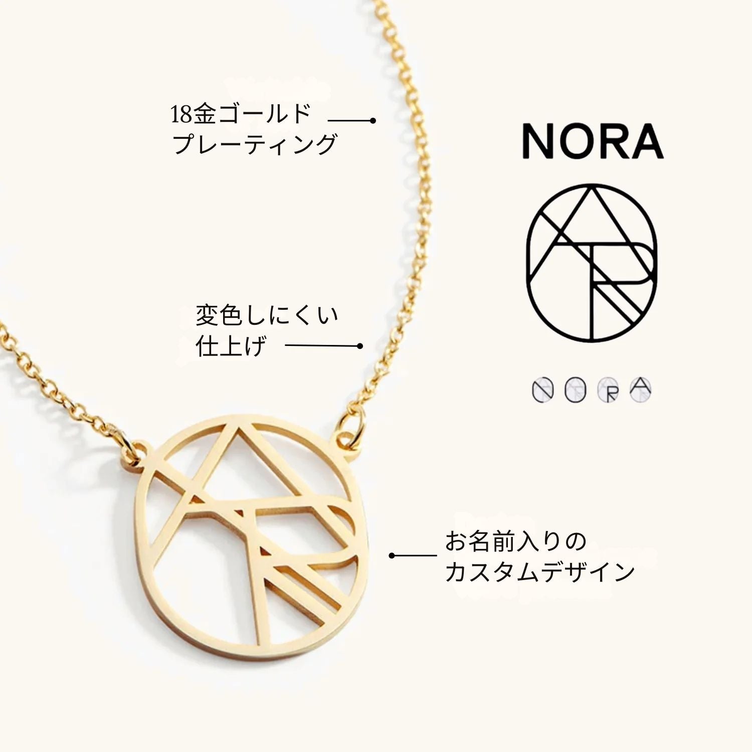 円形のペンダントに名前を繊細にあしらい、