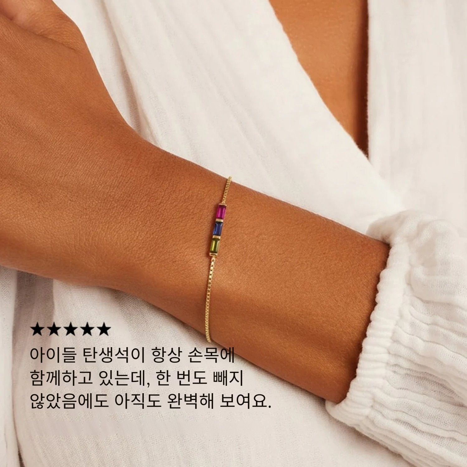 오늘 팔찌를 받았는데 정말 완벽해요 😍 탄생석이 사진보다 훨씬 더 반짝여서 감동했어요. 언니들을 위해서도 꼭 다시 주문할 것 같아요!