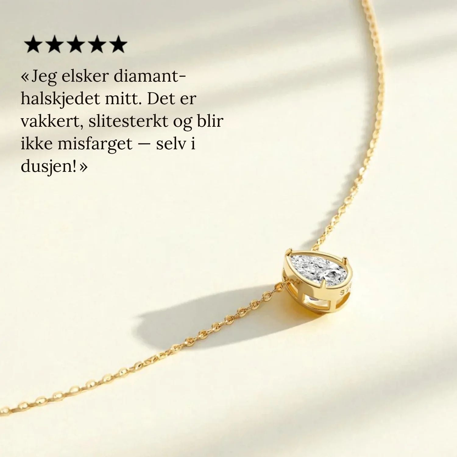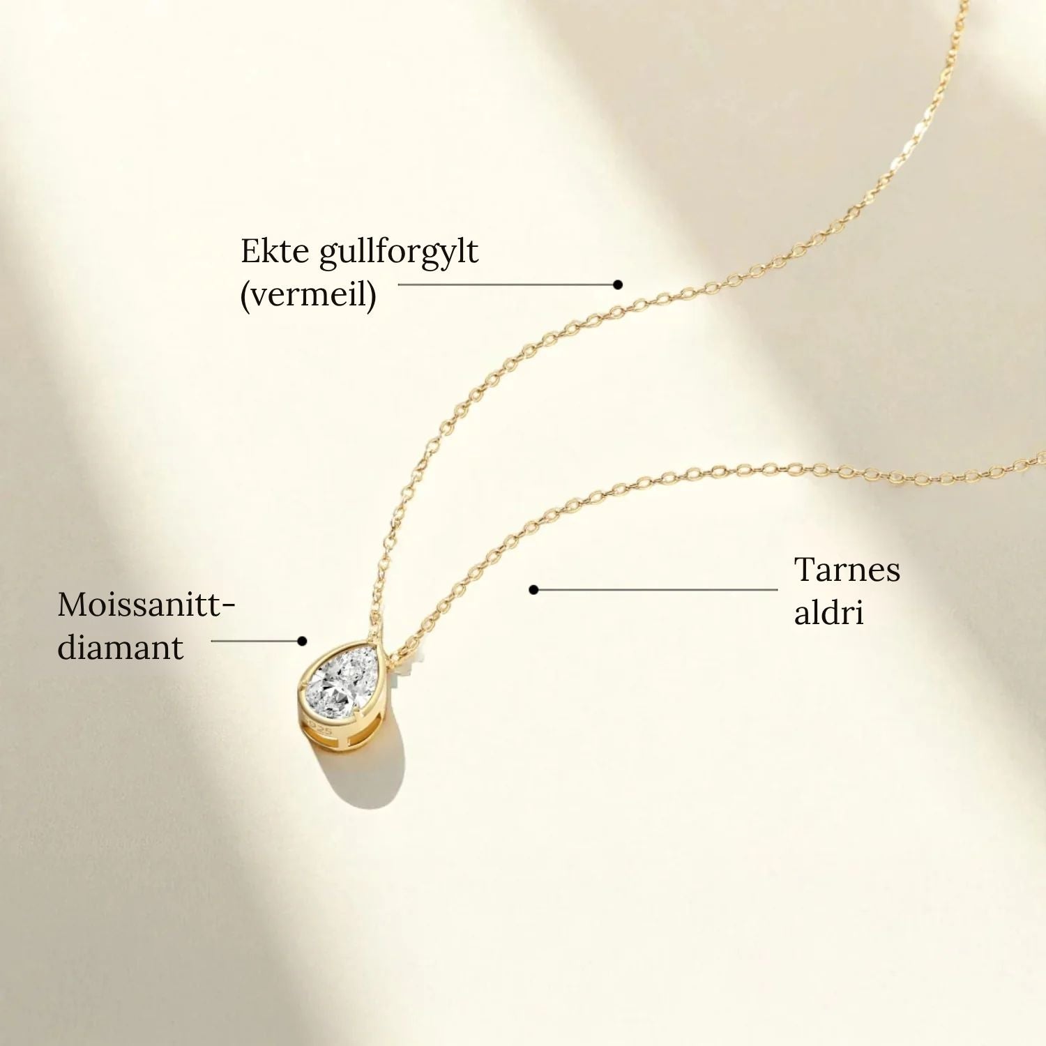 Et delikat og tidløst kjede, prydet med et dråpeformet moissanitt­anheng som fanger lyset ved hver bevegelse. Raffinert og elegant – vakkert alene for et subtilt skinn eller lagvis for en dristigere stil. Et smykke med stille skjønnhet som alltid blir lagt merke til.