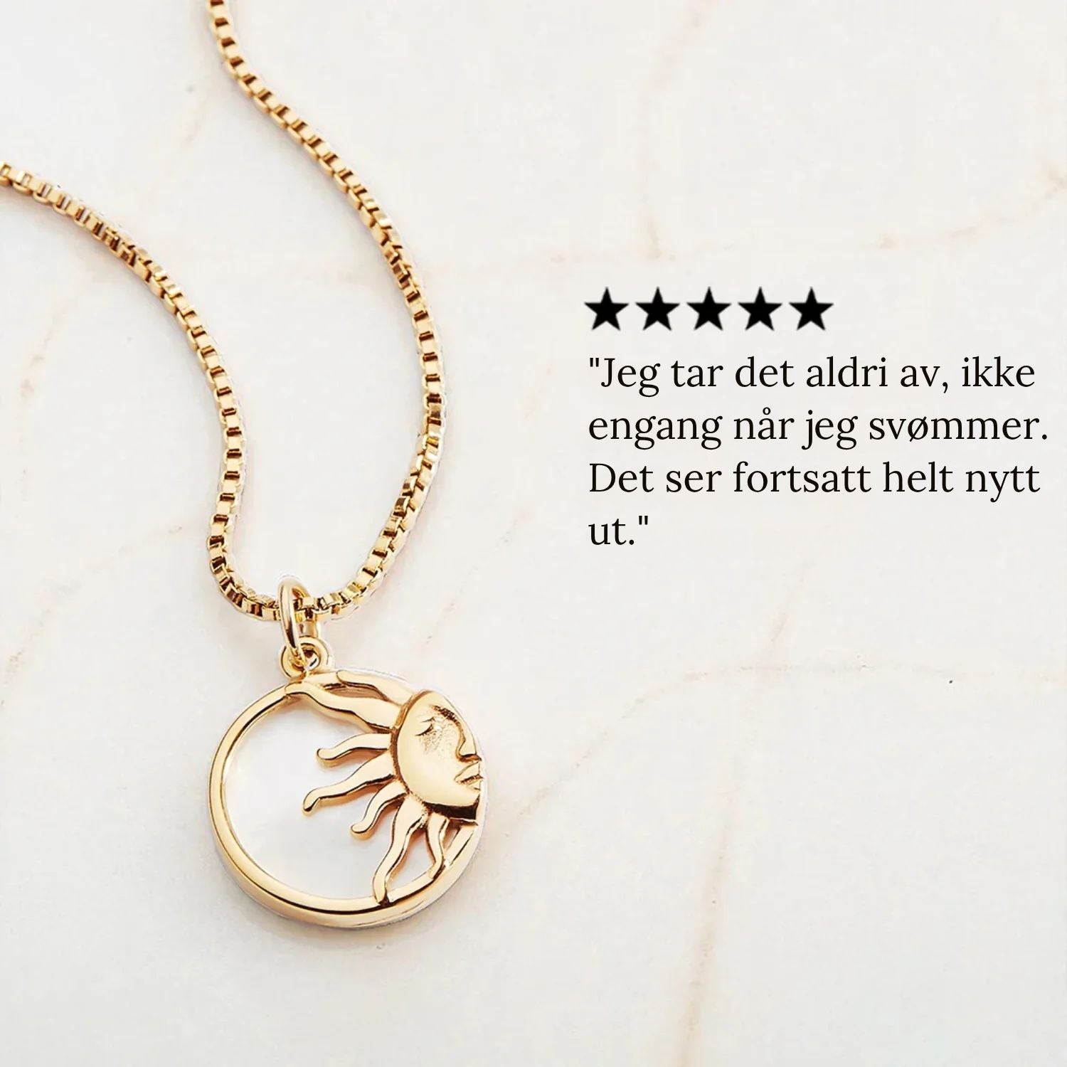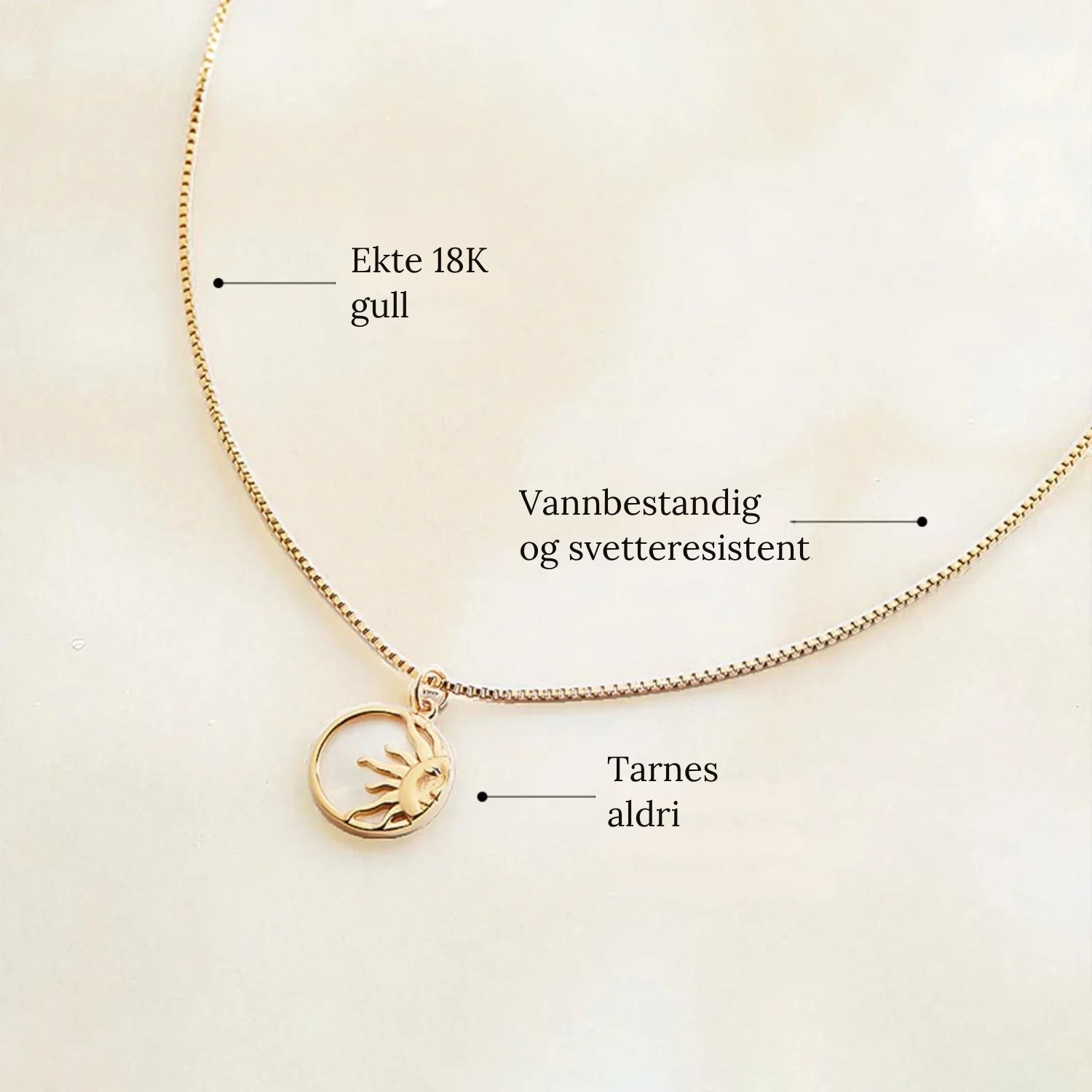 Et lyst og raffinert anheng som fanger solens essens. Bæres alene som et statement eller lagvis for en trendy stil – dette kjedet kombinerer naturlig glød med tidløst design, perfekt både til hverdags og spesielle anledninger.