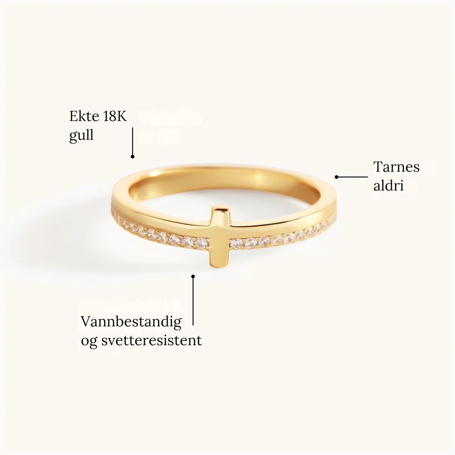 En elegant ring full av mening – et symbol på tro og indre ro. Det raffinerte designet og den gyldne tonen gir et varmt og sofistikert uttrykk, perfekt både til hverdags og ved spesielle anledninger. Et tidløst smykke som forener spiritualitet og stil.