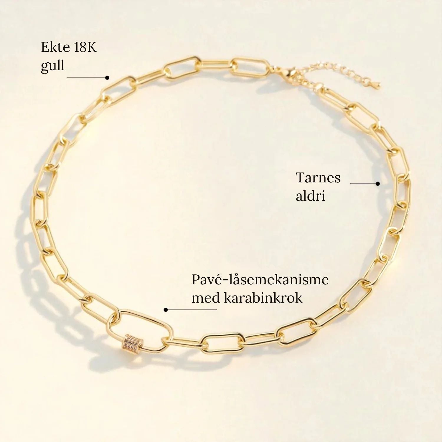 • Lengde på kjedet: 38 cm + 5 cm forlengelse