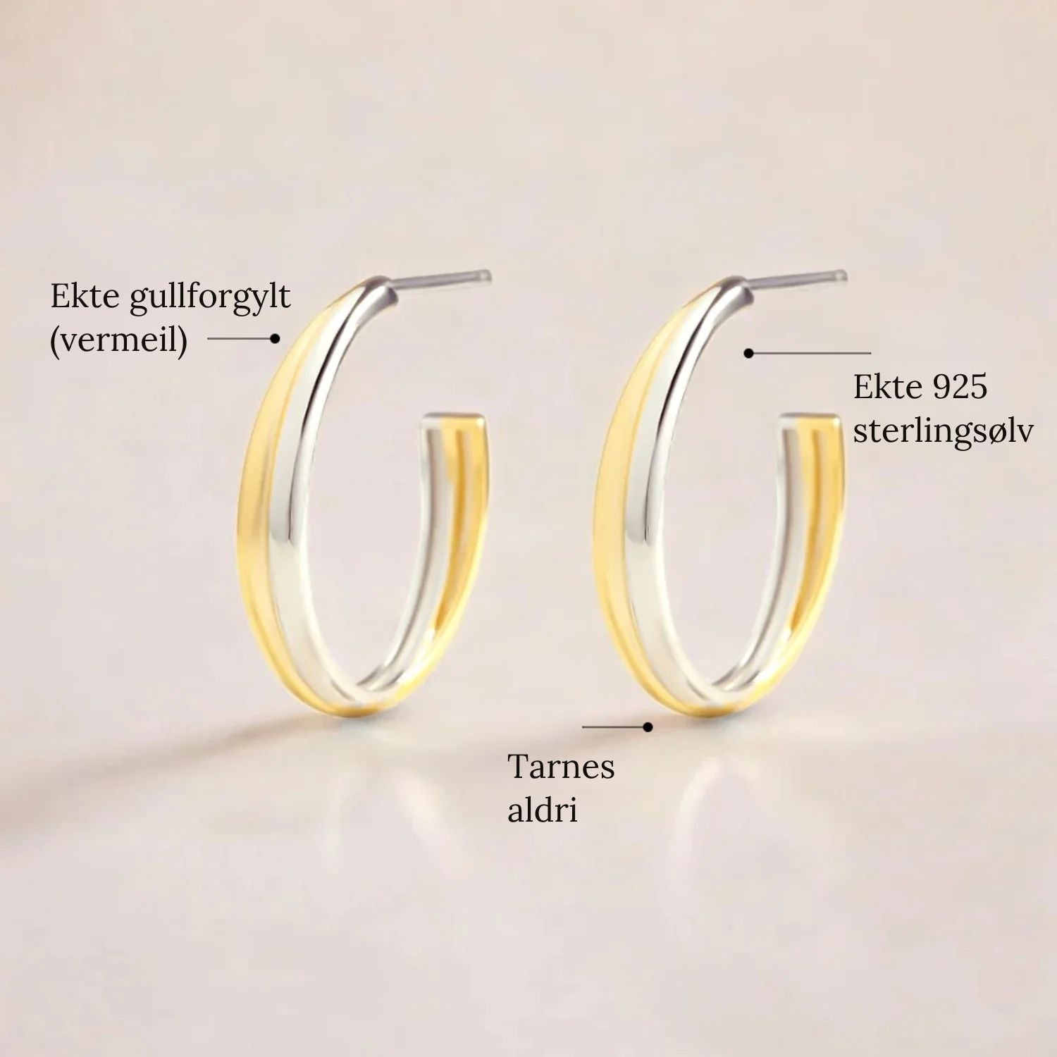 • Materialer: sterlingsølv belagt med 18K gull, forsterket med et klart belegg for varig glans og motstand mot anløping