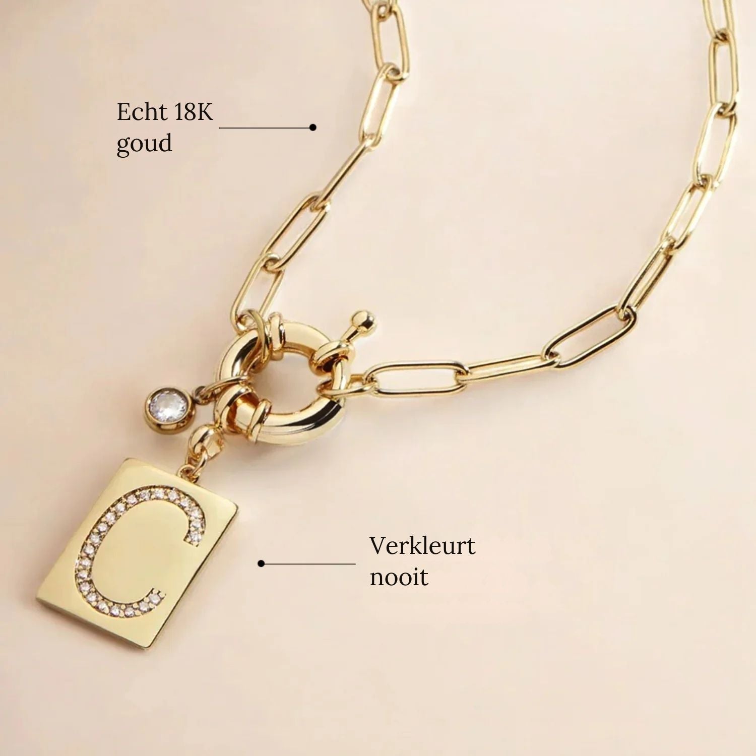 Een persoonlijke touch met een resoluut moderne stijl. Deze hanger met initialen, bezet met fonkelende stenen, wordt gecombineerd met een verfijnde schakelketting voor een perfecte balans tussen elegantie en trend. Solo te dragen voor een chique effect of in lagen voor een uitgesproken look.