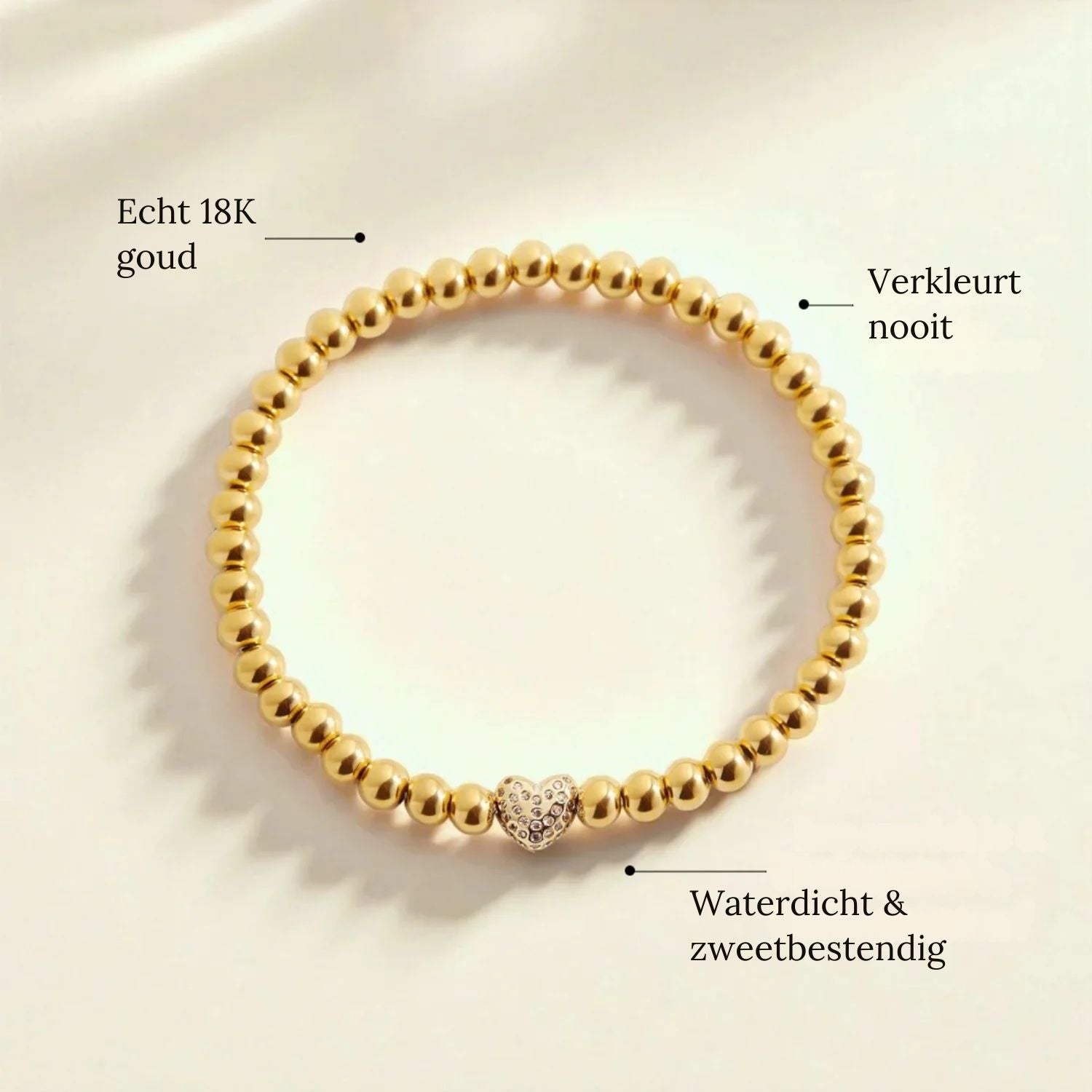 • Materialen: 18K vergulde parels, geregen op een kwaliteitselastiek