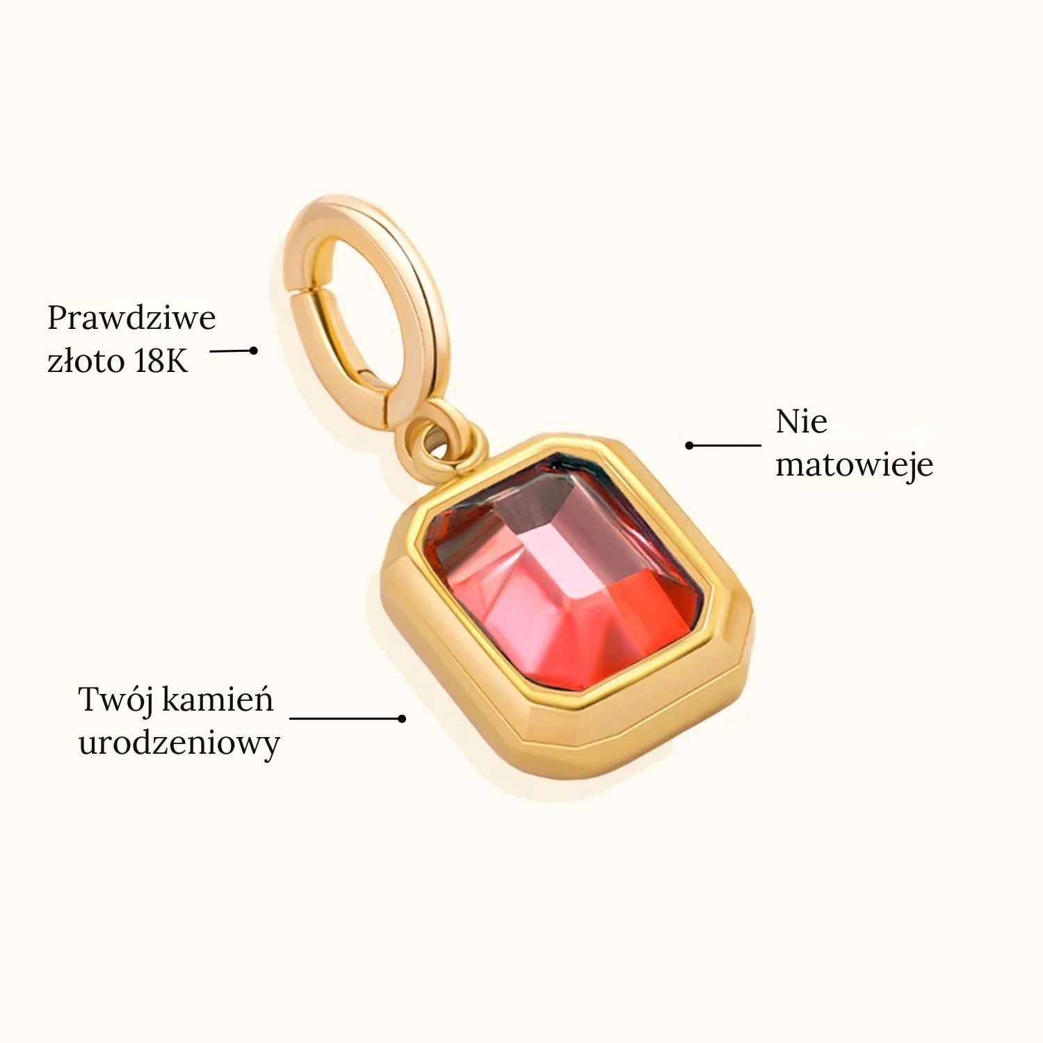 Wyrafinowana zawieszka, która łączy blask z głębokim znaczeniem. Kamień urodzenia szlifowany w formie baguette nadaje jej ponadczasowej elegancji i pozwala spersonalizować biżuterię zgodnie z Twoją historią. Łatwo dopniesz ją do naszyjnika, bransoletki, a nawet kolczyków, tworząc unikalny i symboliczny styl.