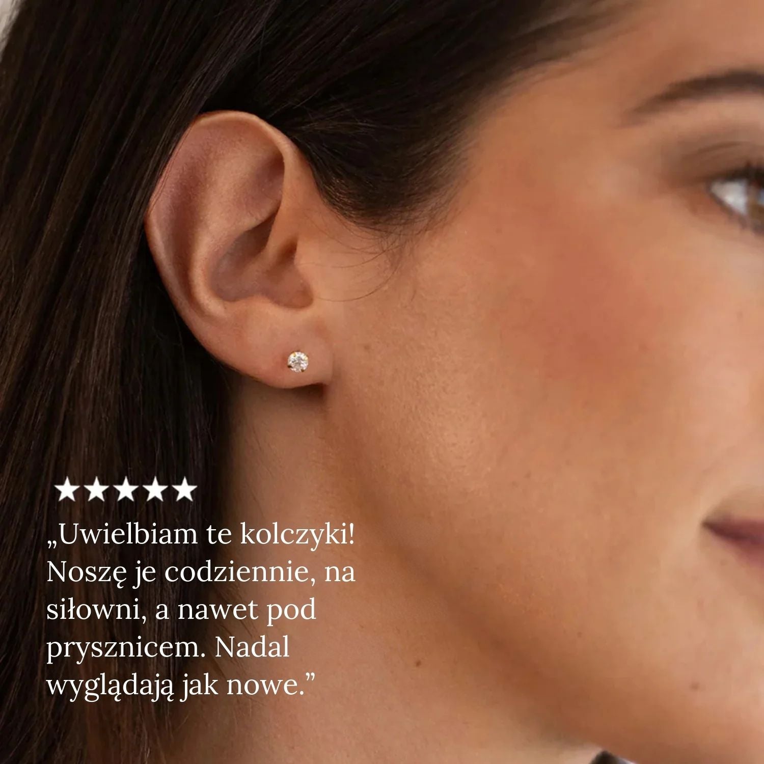 Klasyczne i ponadczasowe kolczyki sztyfty, podkreślone dyskretnym blaskiem, który pięknie dopełnia każdą stylizację. Eleganckie w swojej prostocie — idealne na co dzień i na wyjątkowe okazje, dla niewymuszonego wyrafinowania.