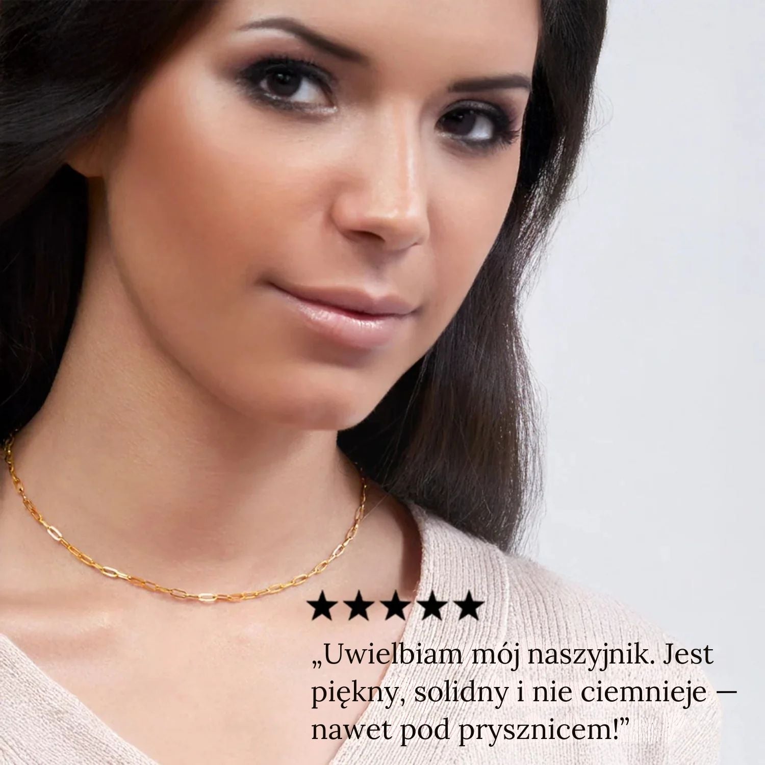 Subtelny i ponadczasowy naszyjnik, idealny do noszenia na co dzień. Jego cienki łańcuch z prostokątnych ogniw pięknie prezentuje się solo, tworząc czysty, minimalistyczny styl, lub warstwowo — dla nowoczesnego i wyrafinowanego efektu.