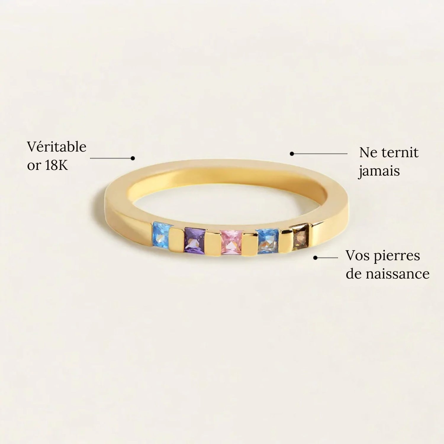 Une bague élégante et personnelle. L’anneau orné de pierres taille princesse offre une touche de couleur sophistiquée et symbolique. Idéal pour célébrer un moment spécial ou sublimer vos looks avec un charme intemporel.