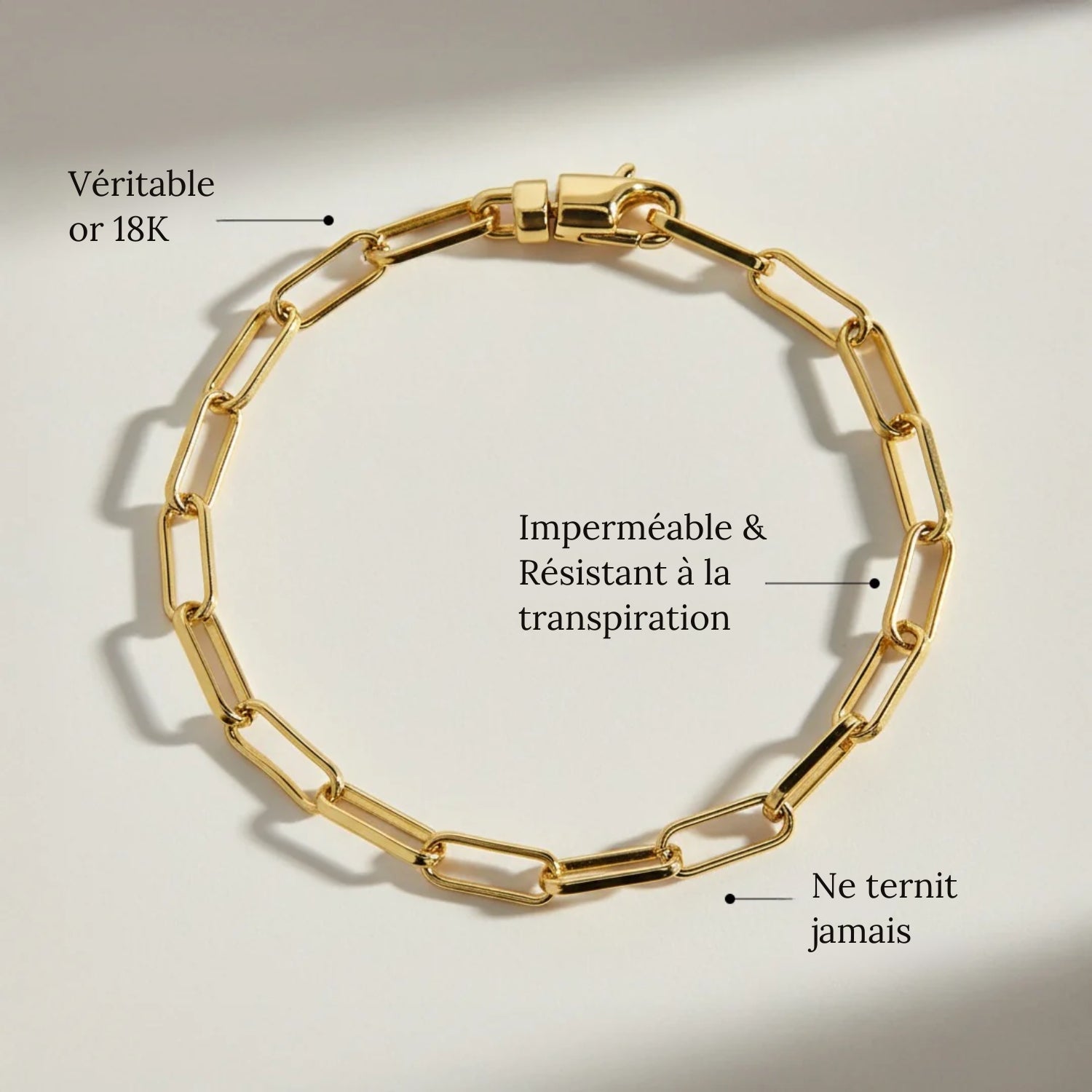 Un bijou audacieux et raffiné. Le bracelet chaîne à maillons ouverts incarne un style moderne et épuré, à porter seul pour une touche chic ou superposé pour un look affirmé, de jour comme de nuit.